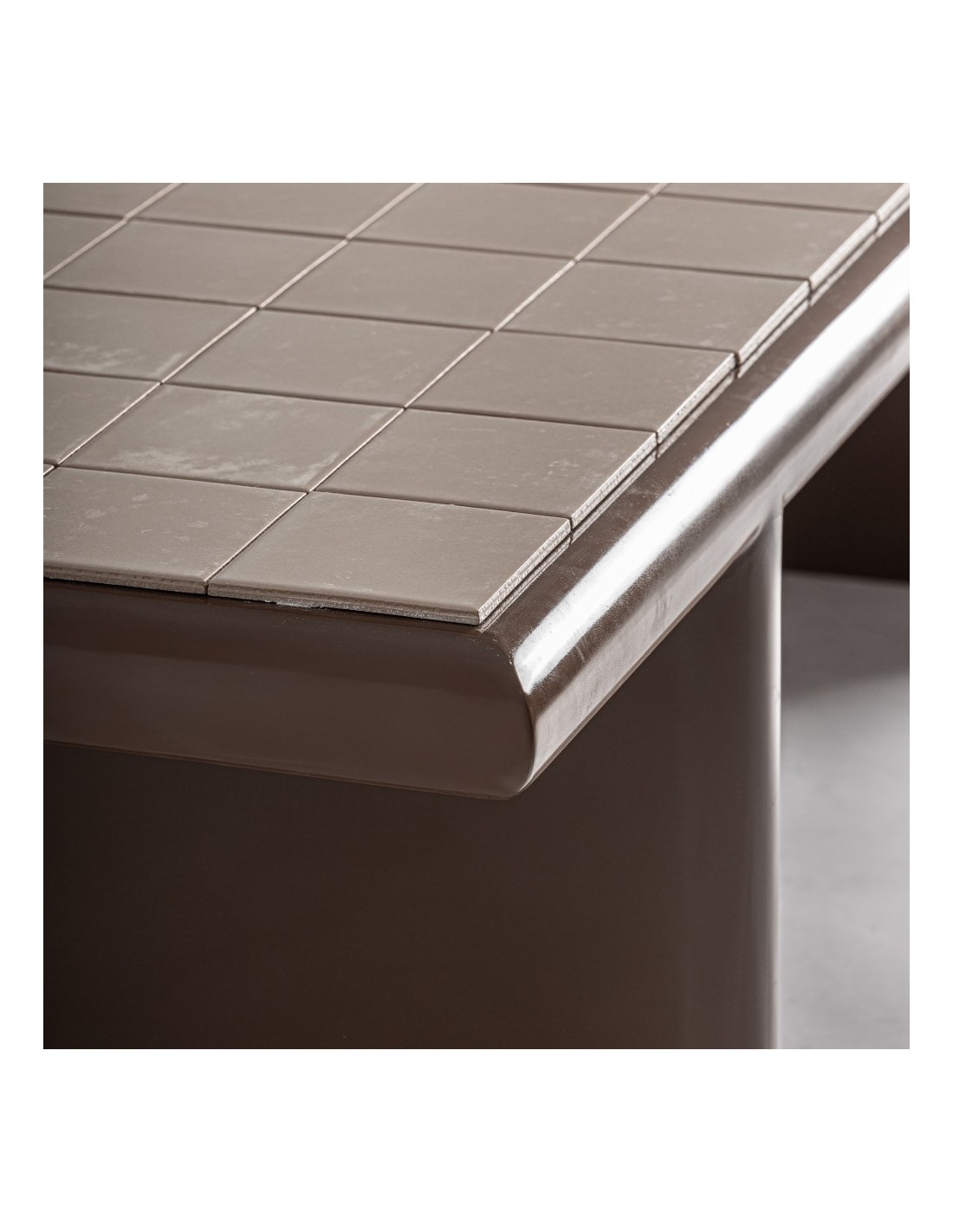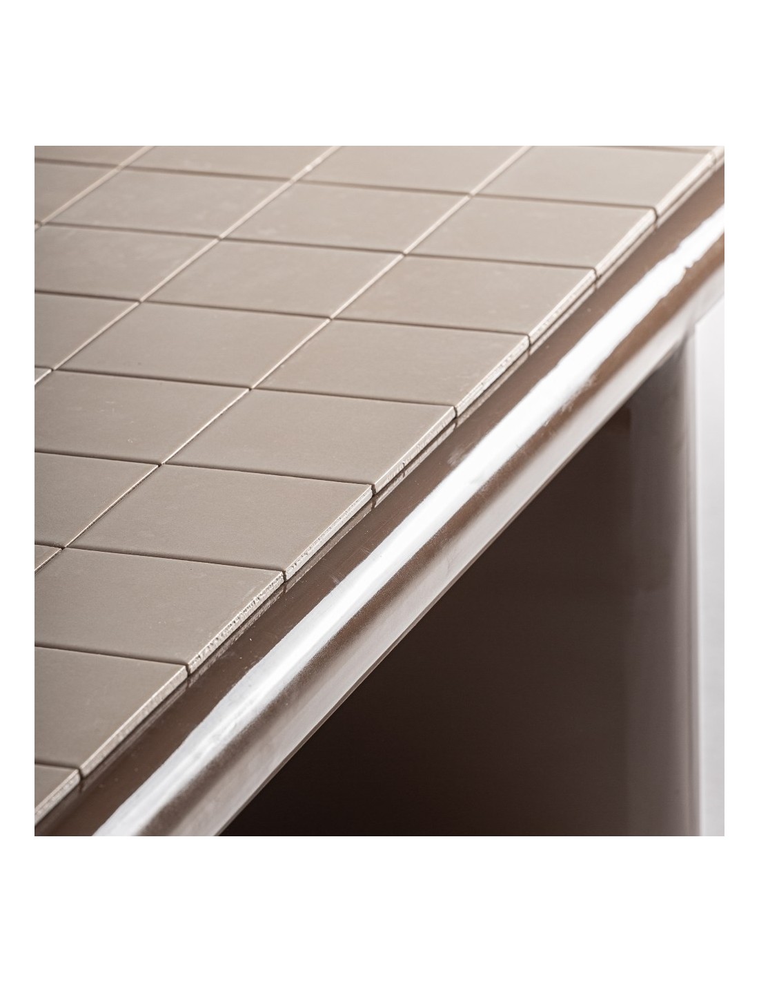 El sobre de cerámica ofrece una superficie resistente, elegante y muy fácil de mantener. Su vibrante color marrón claro aporta luz y crea un contraste armónico con la base en DM.