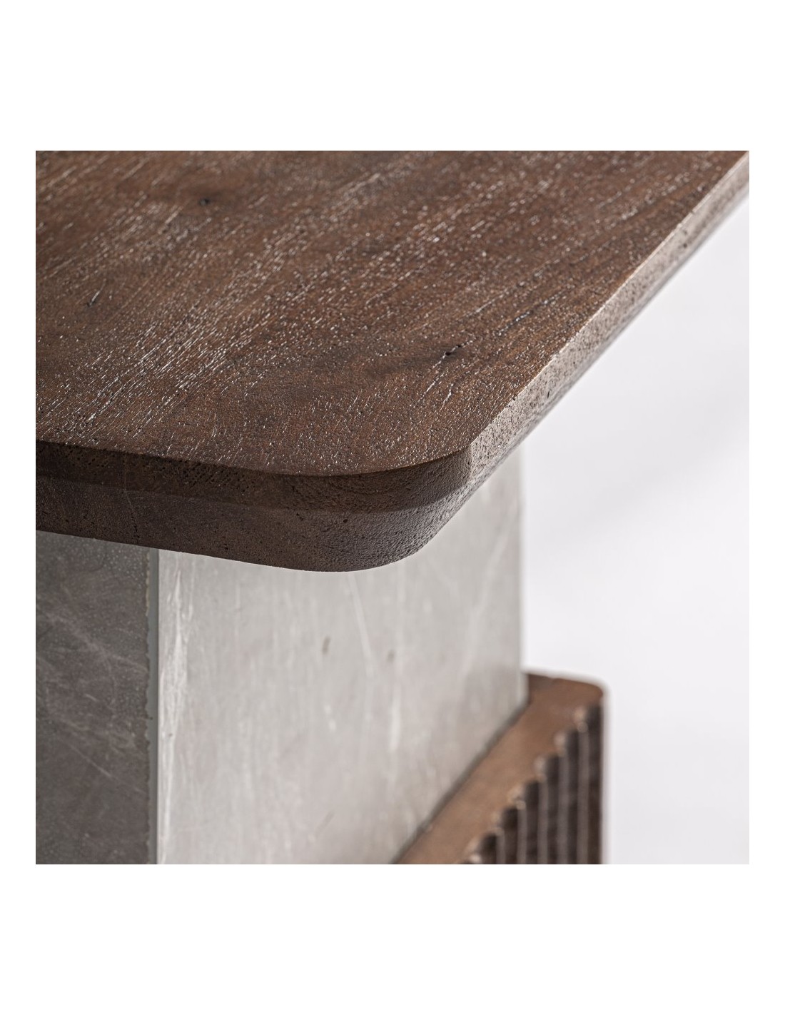 La mesa auxiliar Anzex de Vical Home destaca por su cuidada combinación de materiales nobles y su diseño contemporáneo de líneas equilibradas. Fabricada en madera maciza de mango, aporta solidez, durabilidad y una estética natural que contrasta elegantemente con su superficie de mármol gris con acabado veteado, convirtiéndola en una pieza decorativa de gran presencia.
