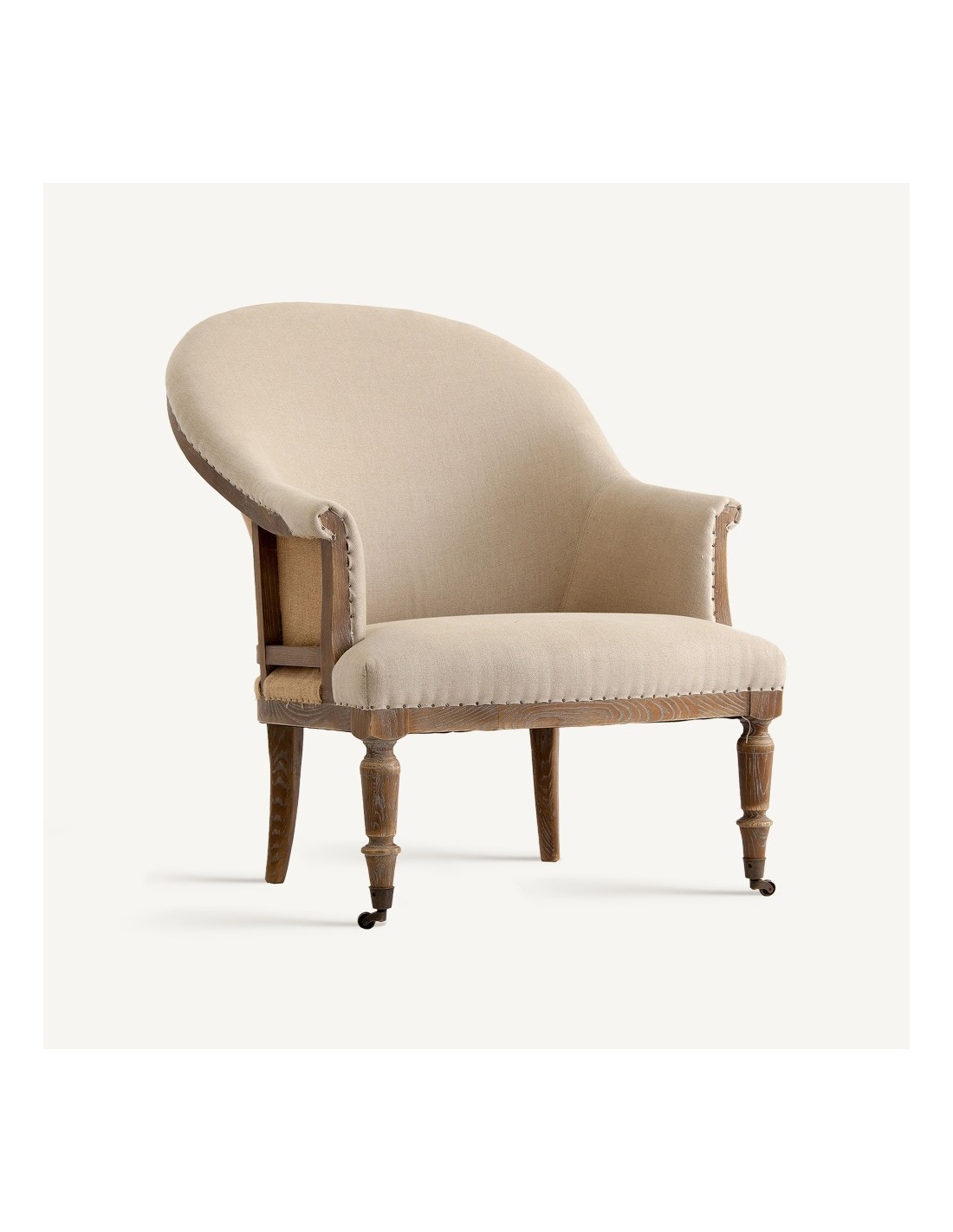 El sillón Ault de Vical Home ofrece una sentada amplia y confortable gracias a su estructura de madera de fresno y su tapizado en loneta color arena envejecido. Un sillón de estilo natural y relajado, ideal para salones acogedores y espacios con personalidad.