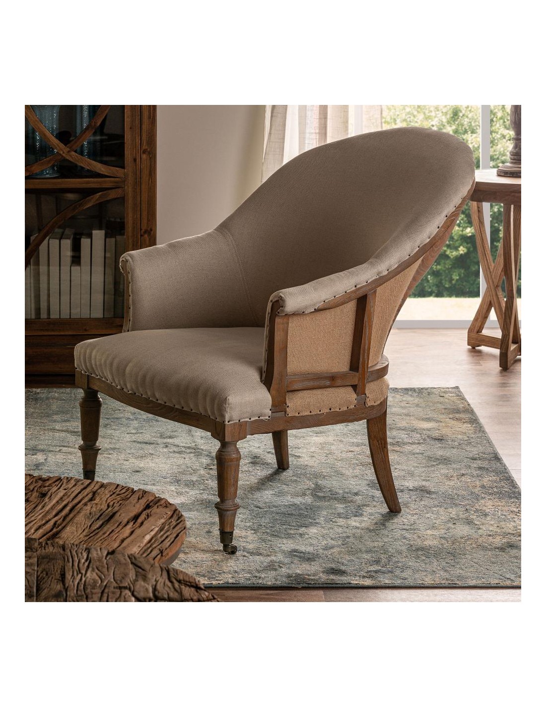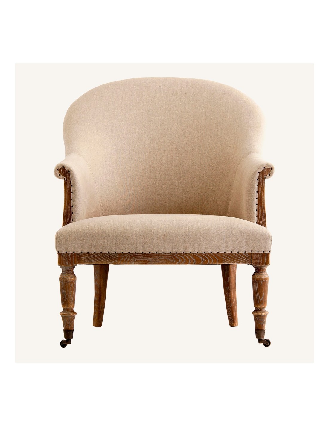Fabricado con una sólida estructura de madera de fresno, el sillón Ault garantiza resistencia, estabilidad y durabilidad a lo largo del tiempo. Su tapizado en loneta color arena envejecido ofrece un tacto agradable y una estética relajada, fácil de combinar con diferentes estilos decorativos, desde ambientes naturales hasta interiores contemporáneos.