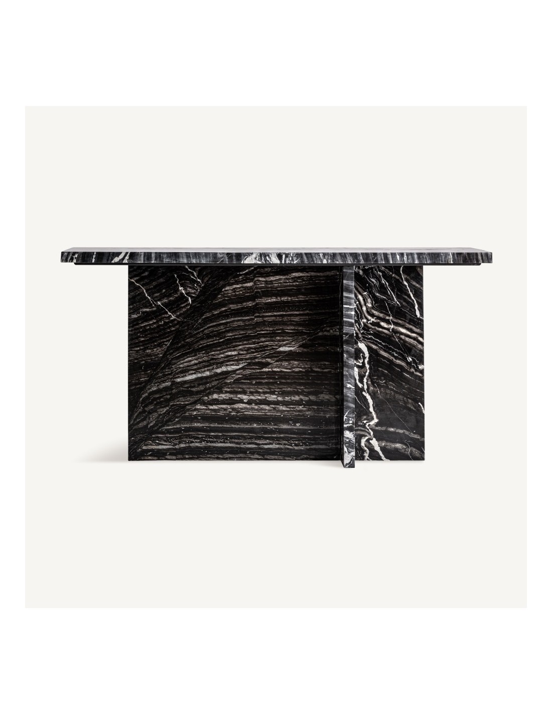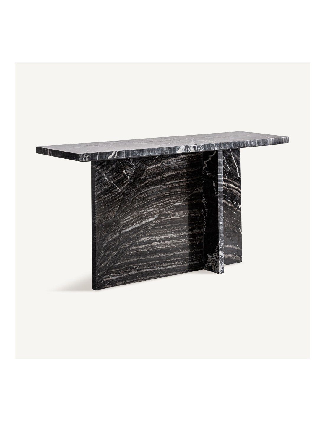 La consola Khat de Vical Home combina diseño contemporáneo con la elegancia del mármol negro. Compacta, funcional y desmontable, es perfecta para salones, recibidores o pasillos, aportando estilo y versatilidad en cualquier espacio.