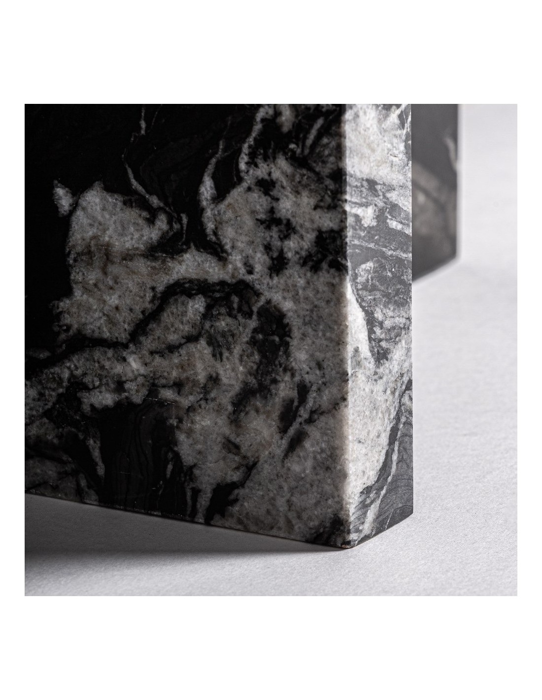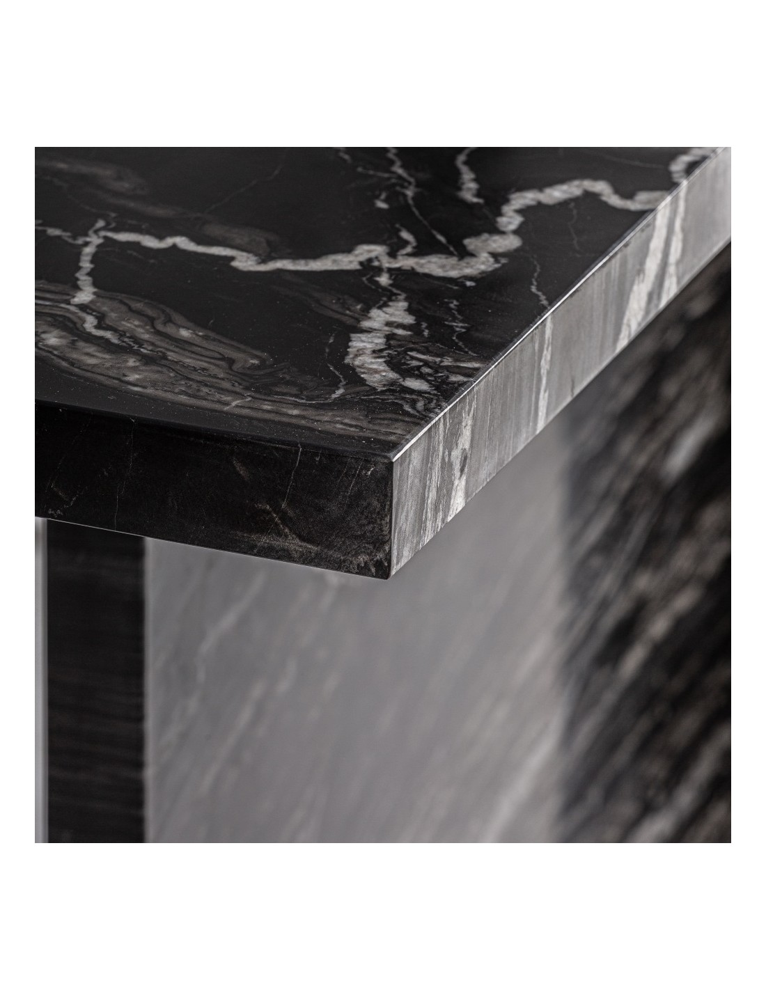 Fabricada en mármol negro de alta calidad, la consola ofrece durabilidad y estabilidad, manteniendo su aspecto premium a lo largo del tiempo. Su diseño desmontable permite un transporte y montaje sencillo, facilitando su adaptación a espacios diversos.