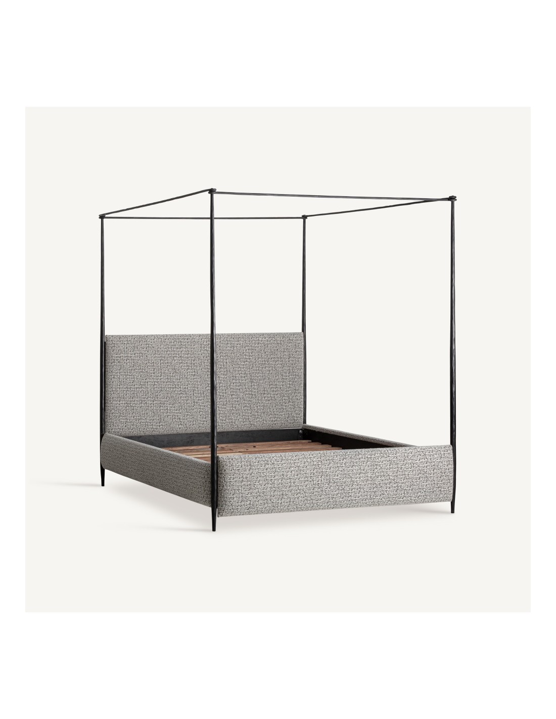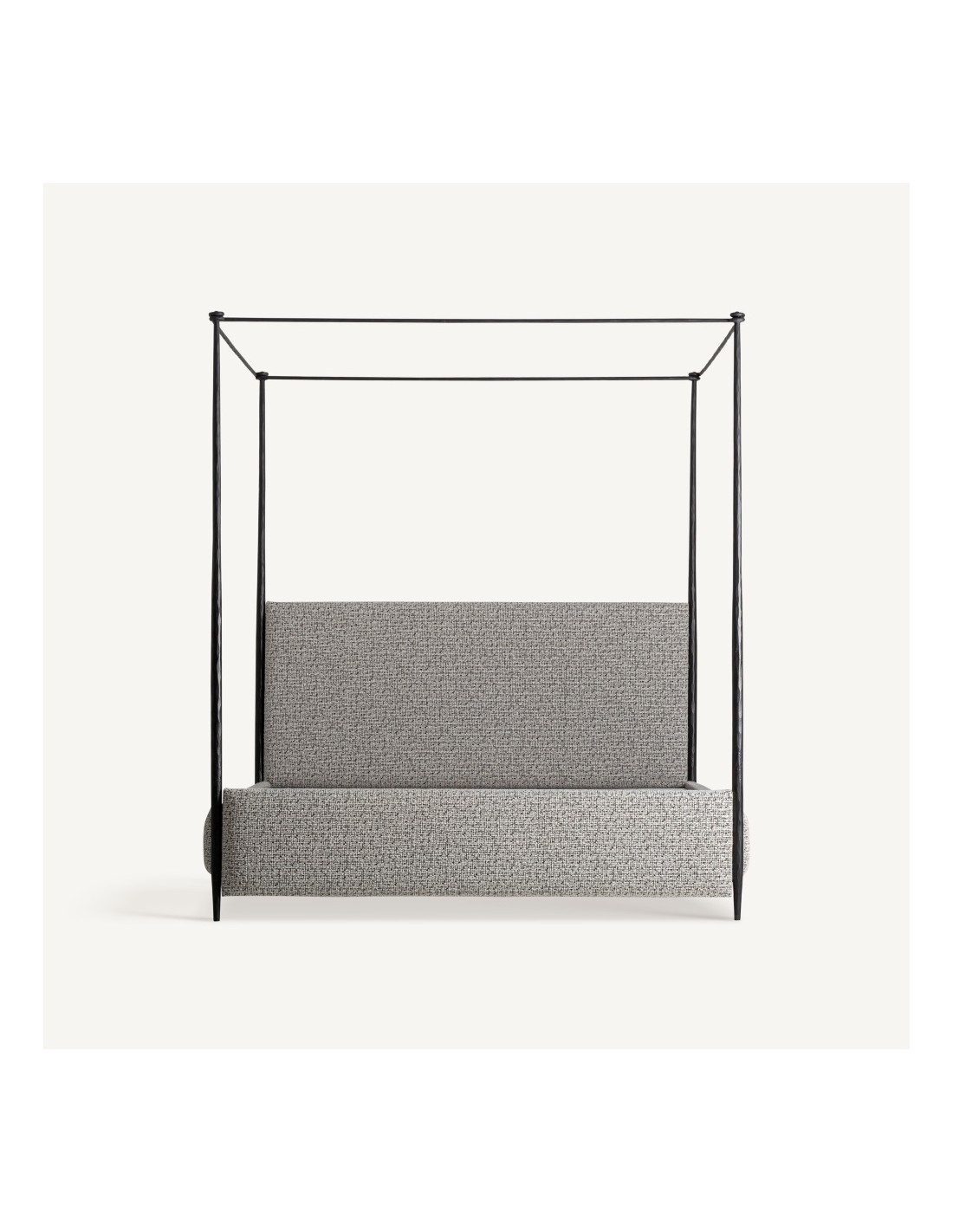 La cama de hierro negra con algodón beige de Vical Home combina una estética industrial y moderna con una sensación cálida y natural. Su estructura de hierro en color negro aporta robustez, estabilidad y un diseño contemporáneo, mientras que el tapizado en algodón beige añade confort y un contraste suave que realza la elegancia del conjunto.