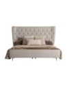 Con unas dimensiones de 195 cm de ancho, 216 cm de fondo y 215 cm de alto, esta cama destaca por su presencia y su cabecero alto, convirtiéndose en el punto focal del dormitorio. Su diseño es ideal para ambientes modernos, industriales o nórdicos, donde la combinación de metal y textiles naturales crea un equilibrio visual perfecto.
