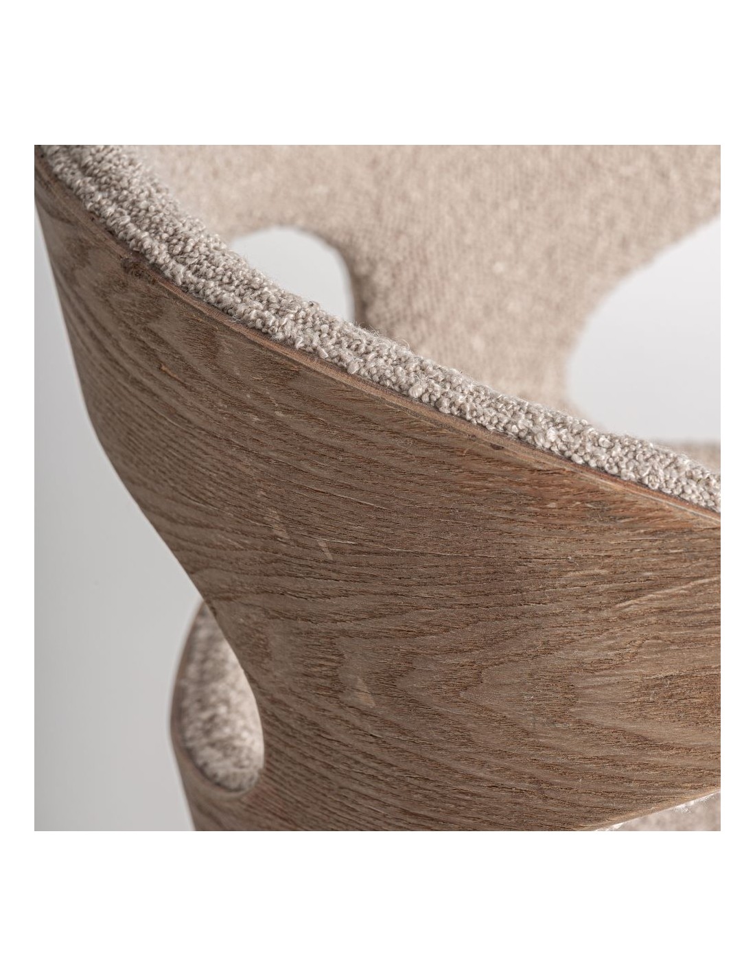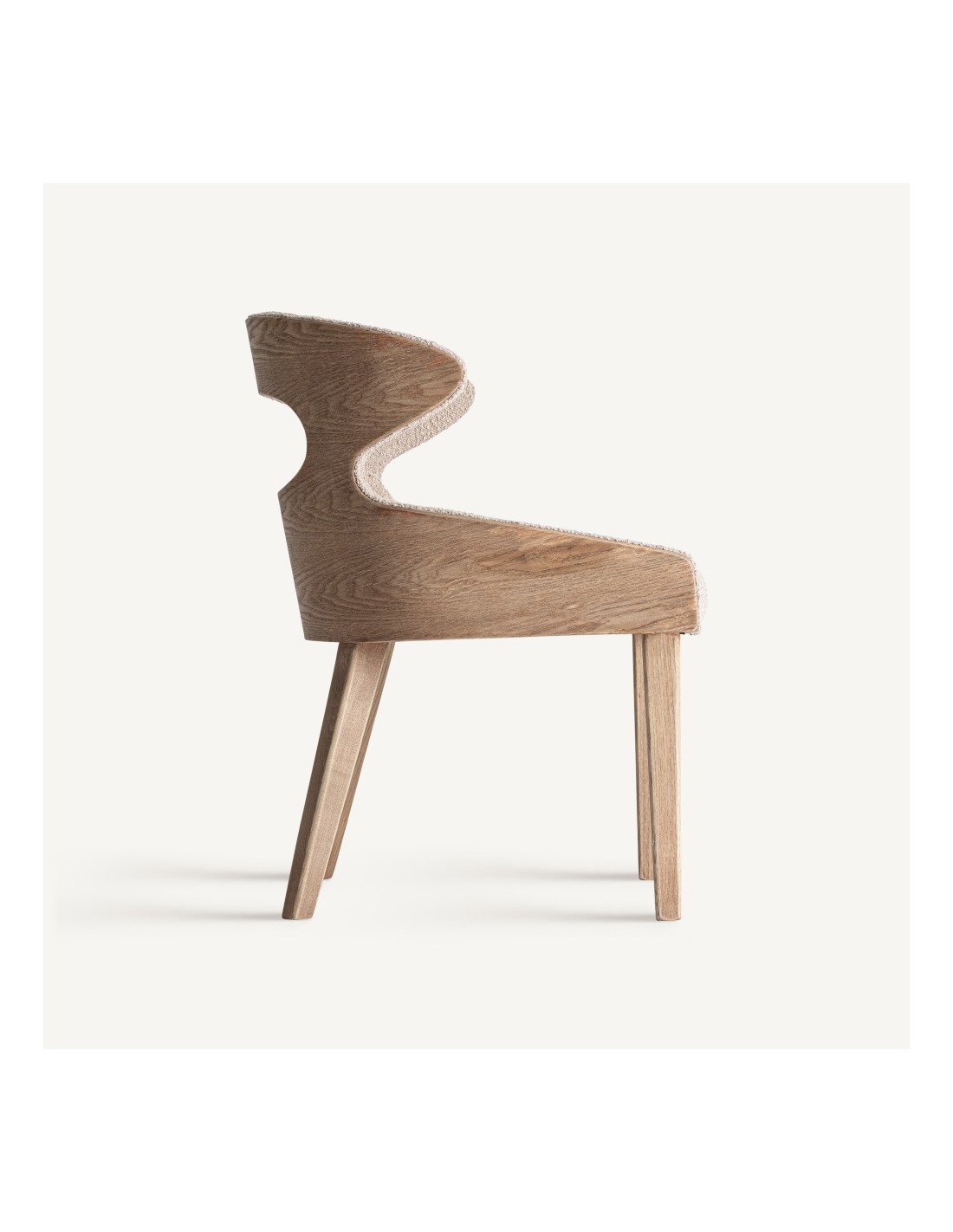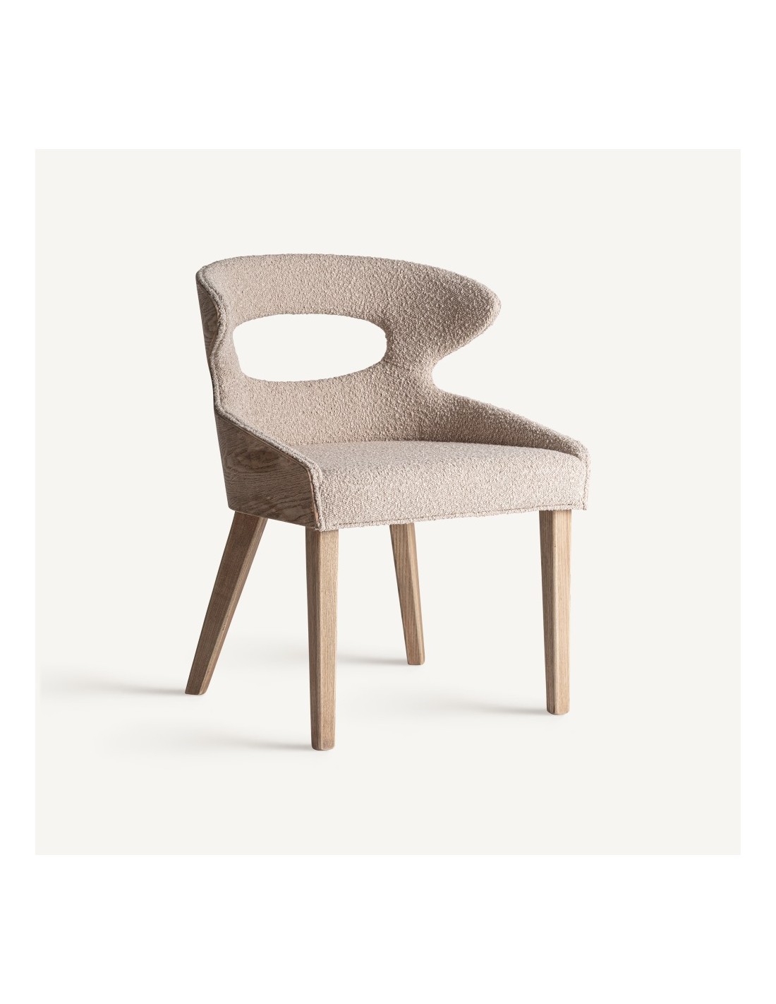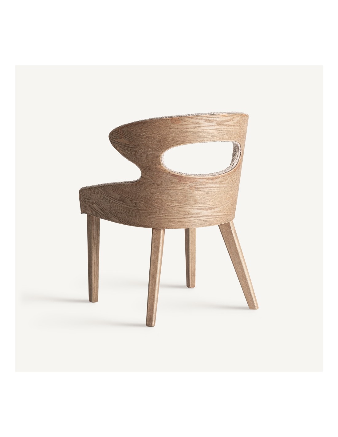 Silla Trebas de VICAL Home en madera de fresno marrón claro con asiento y respaldo en poliéster beige. Diseño contemporáneo y elegante, ideal para comedores, oficinas y espacios modernos.