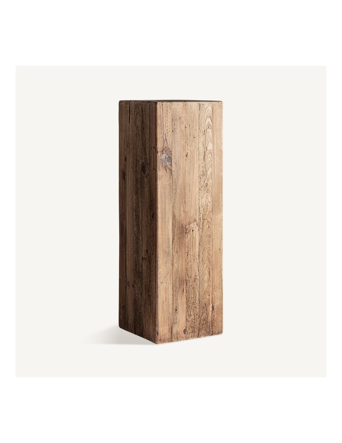 La peana Truel de VICAL Home es una pieza decorativa de estilo clásico fabricada en madera de pino reciclado, una opción sostenible que aporta calidez y carácter a cualquier espacio. Su acabado en color marrón claro realza la belleza natural de la madera, mostrando vetas y texturas propias de un material recuperado.