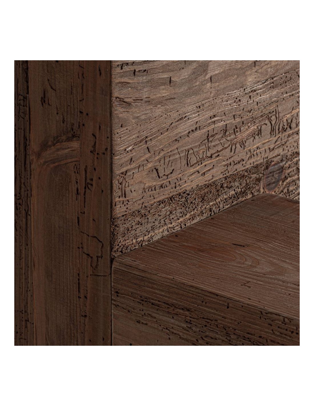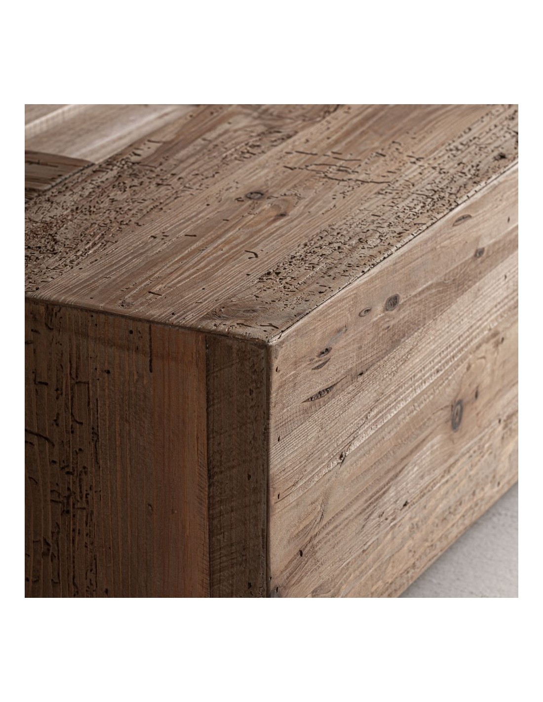 Su estructura robusta y su diseño clásico ofrecen una base estable y elegante, creando un ambiente acogedor y sofisticado. El uso de pino reciclado no solo aporta una estética única con vetas y texturas naturales, sino que también contribuye a un enfoque responsable con el medio ambiente.