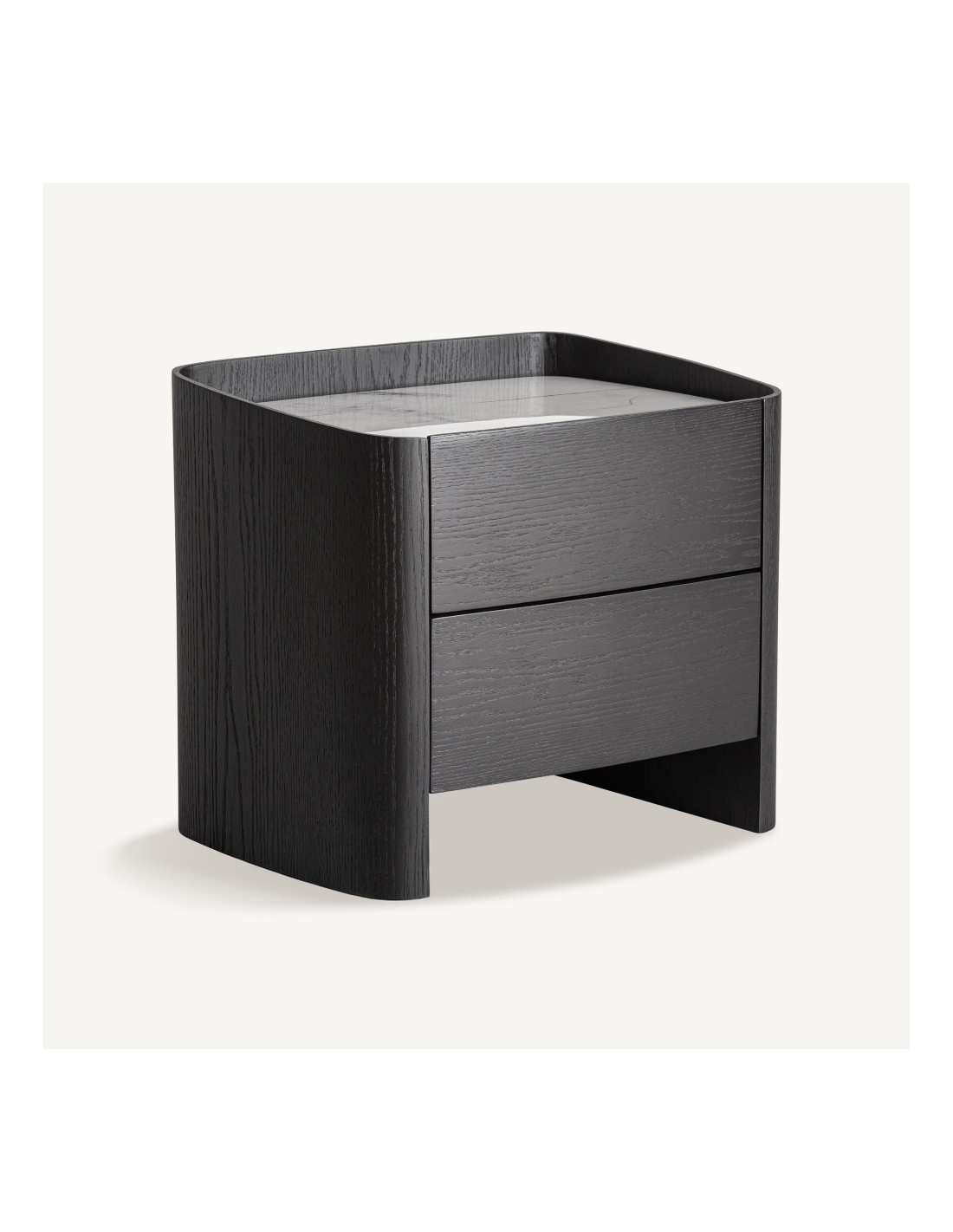 Su diseño compacto y depurado la convierte en una solución perfecta para dormitorios contract y residenciales donde se prioriza la coherencia material y una presencia discreta pero cuidada. La combinación de madera y piedra sinterizada garantiza resistencia al uso diario, además de una apariencia sofisticada que se integra en interiores modernos y minimalistas.