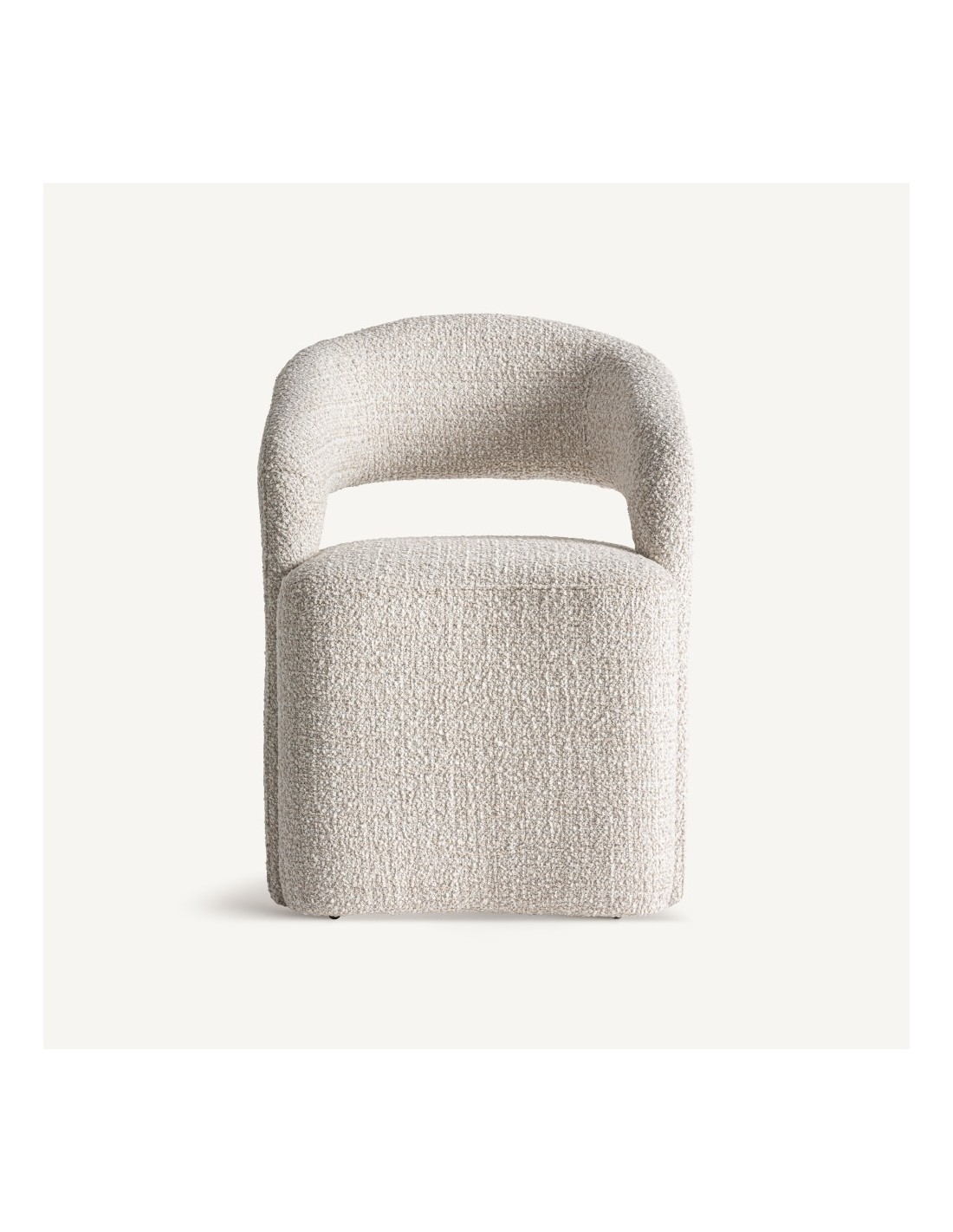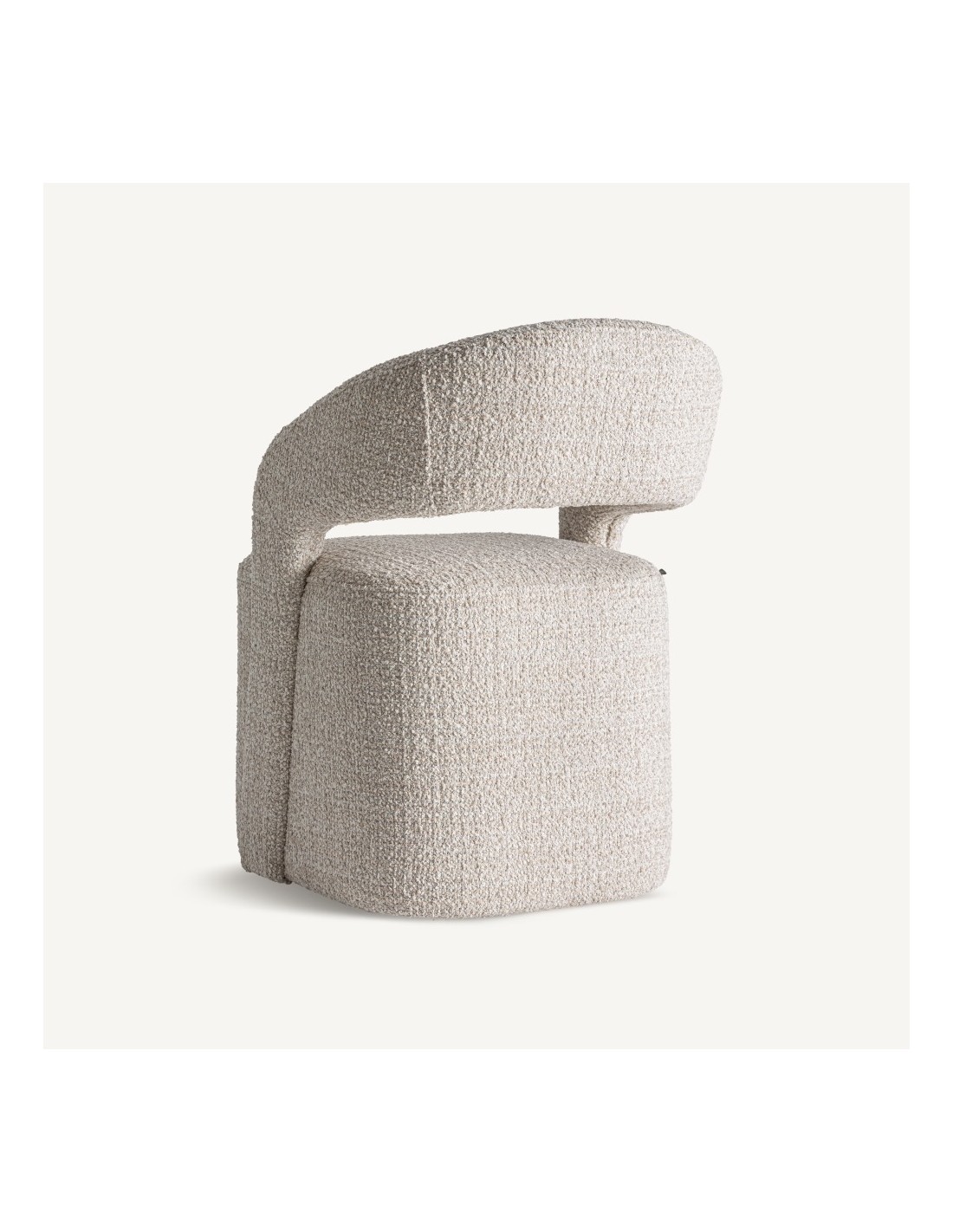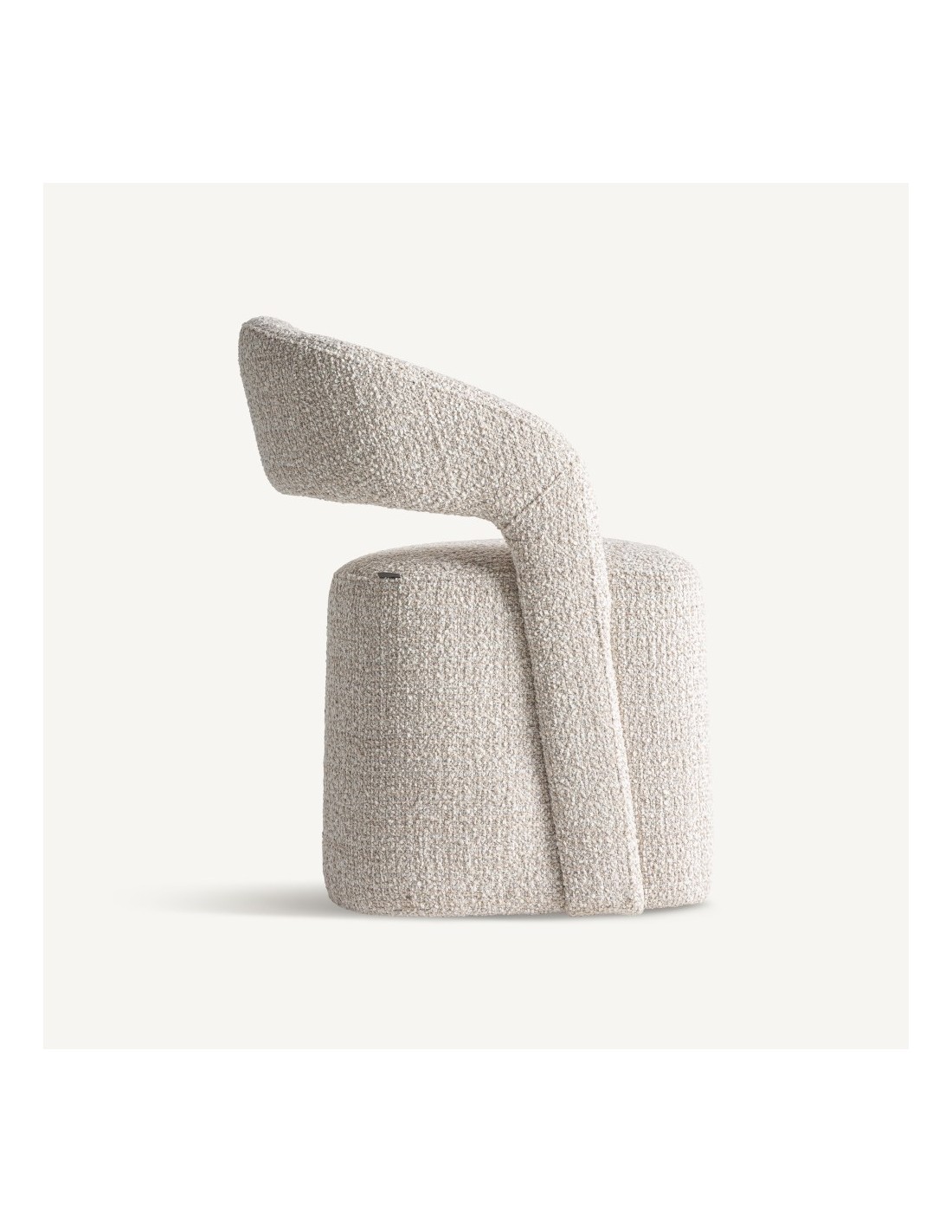 La Silla Besne de Vical Home combina diseño contemporáneo y confort envolvente en una pieza de líneas curvas y proporciones equilibradas. Tapizada en poliéster crema con acabado chenilla y con estructura interior de madera de pino y espuma, ofrece resistencia, durabilidad y una estética sofisticada ideal para comedores, zonas lounge o proyectos contract.