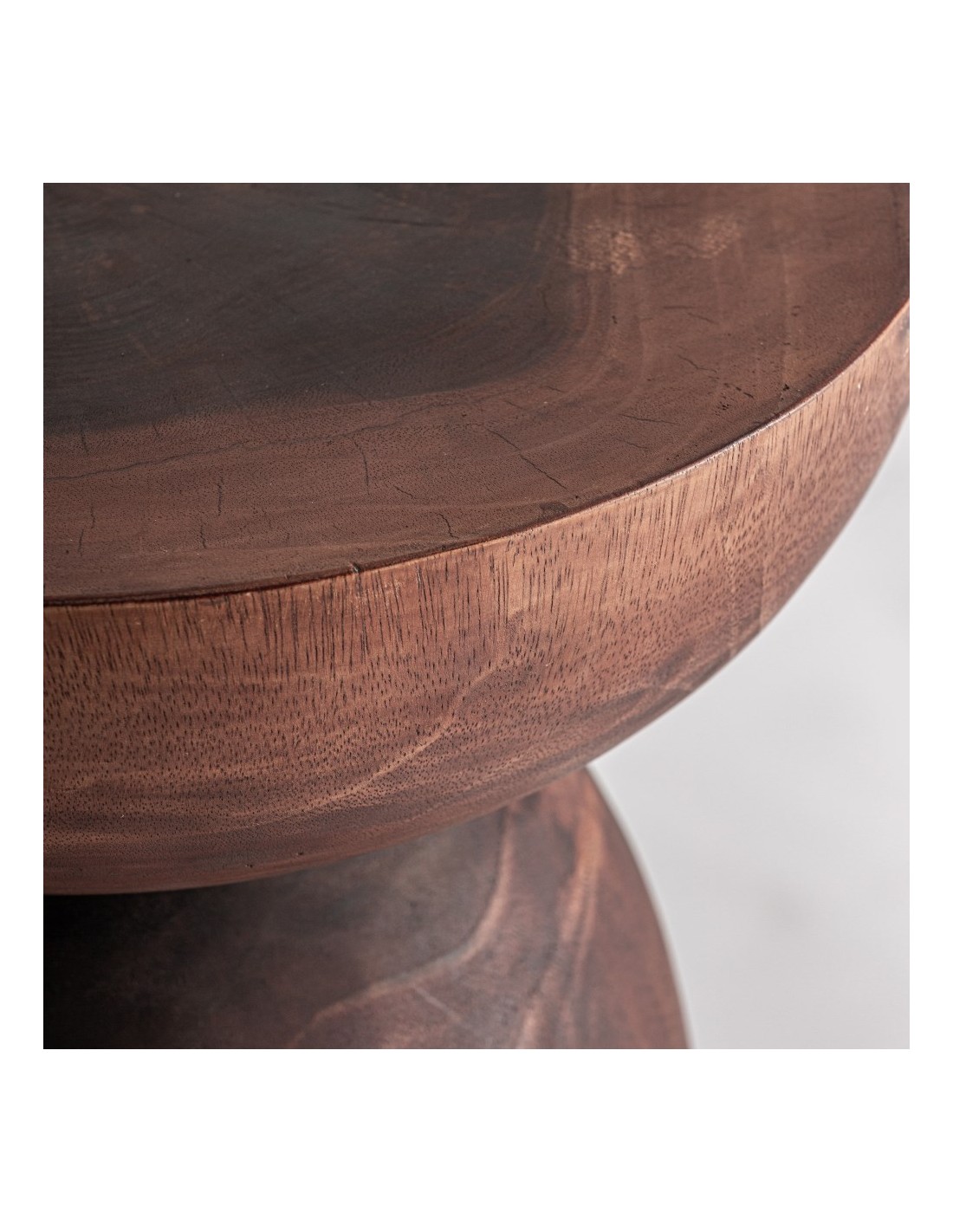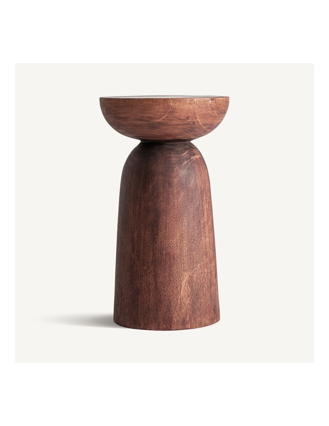 La Mesa Auxiliar Jangany de Vical Home destaca por su estética étnica contemporánea y su elegante equilibrio formal. Fabricada en madera maciza de suar en tono marrón, su estructura cónica y su sobre proporcionado generan un contraste armónico entre solidez estructural y ligereza visual.