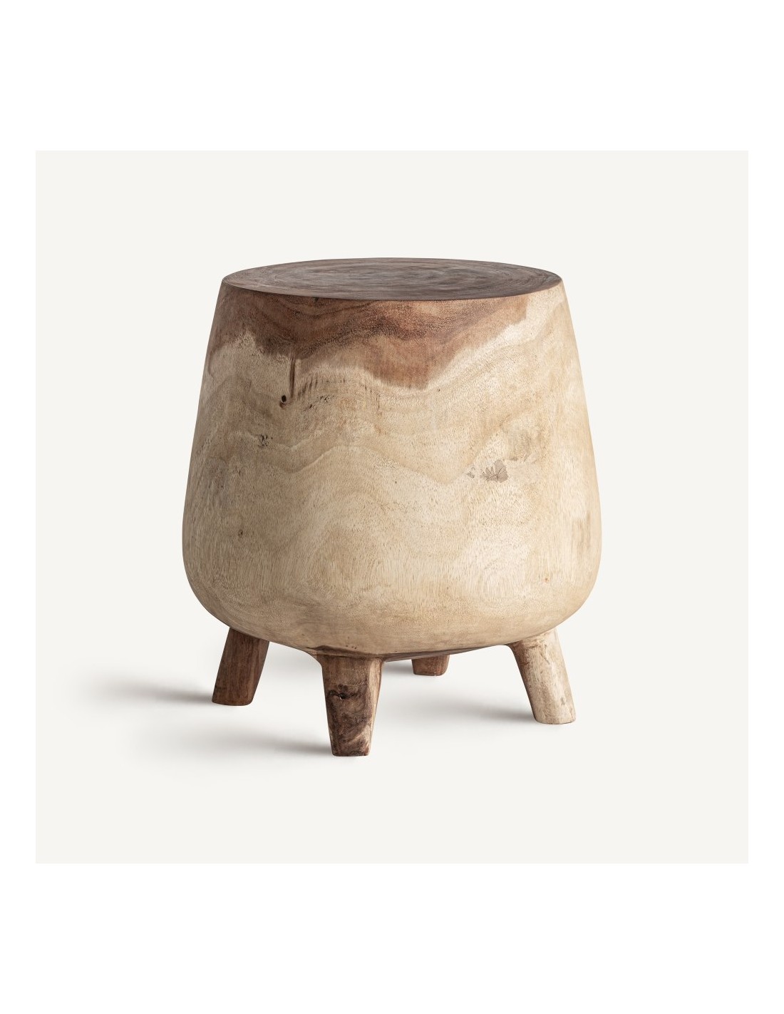 La Mesa Auxiliar Kalandy de Vical Home combina fuerza étnica y diseño funcional en una pieza de fuerte presencia. Fabricada en madera maciza de suar en tono marrón, esta mesa compacta y robusta aporta calidez, textura y carácter a cualquier espacio.
