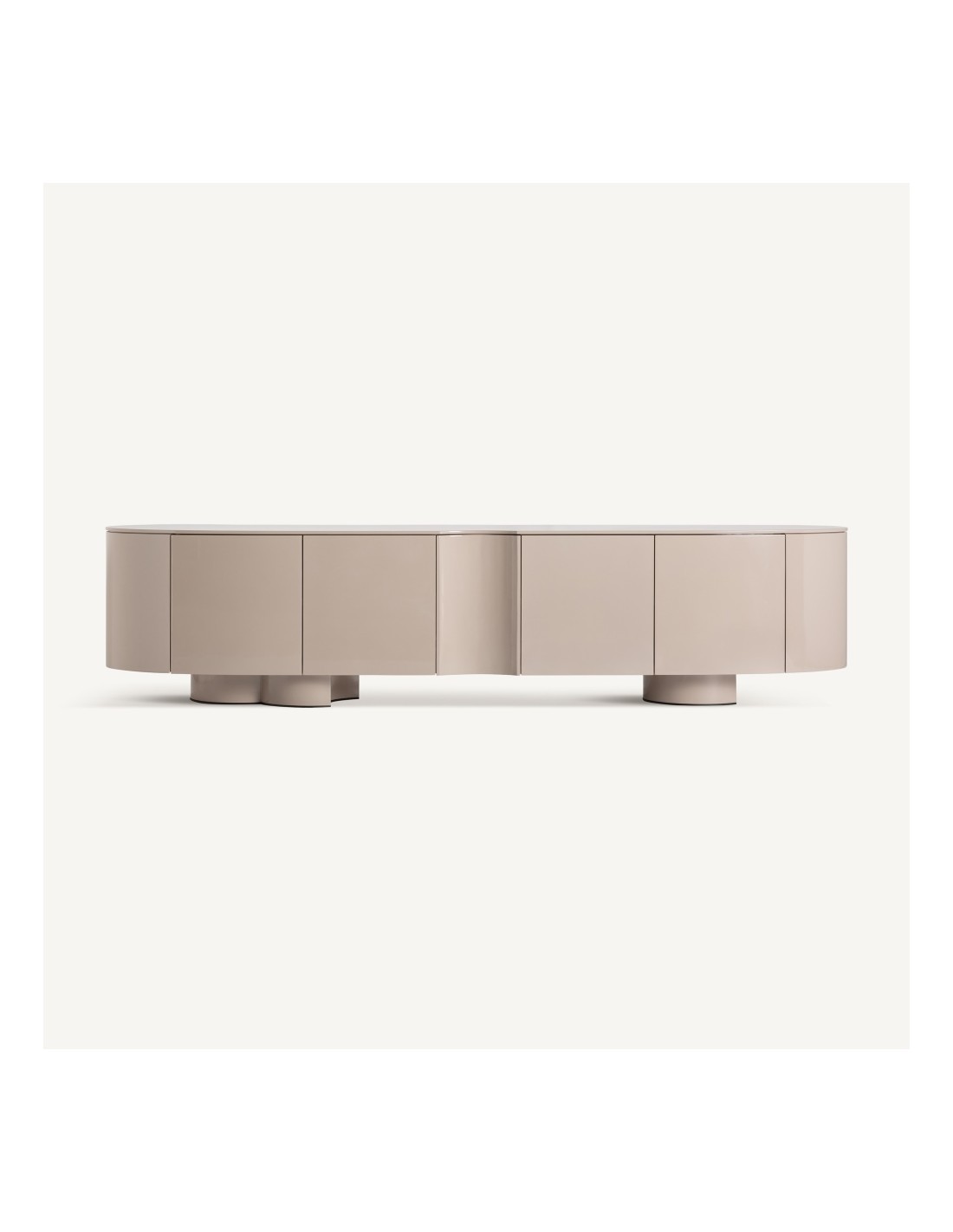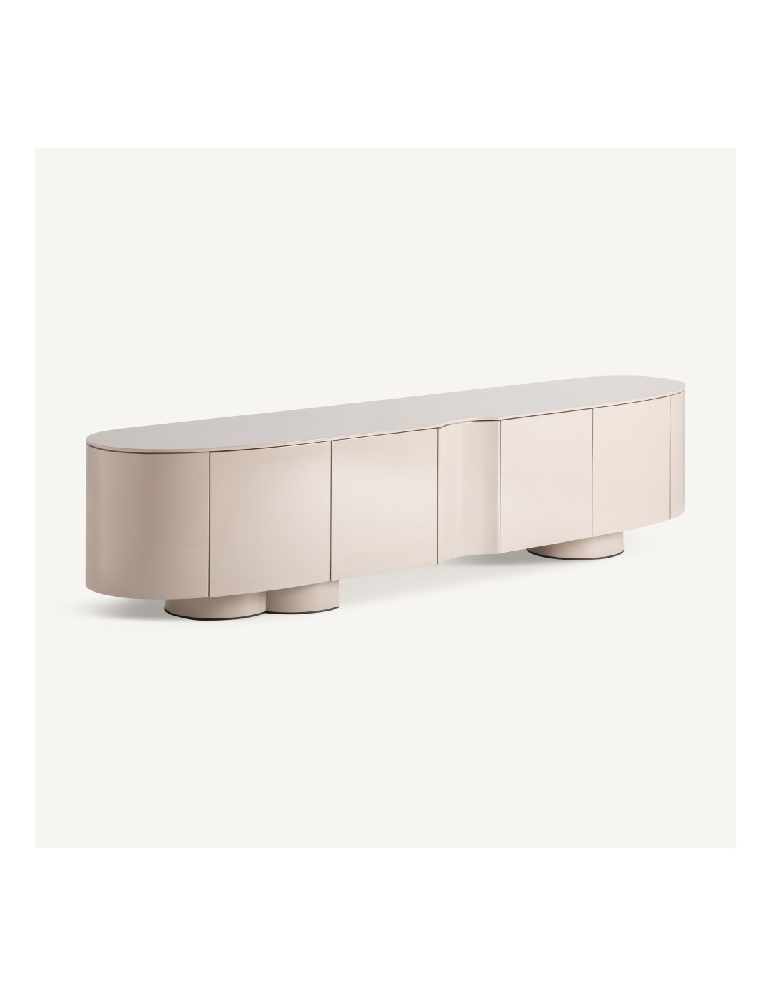 El Mueble TV Singen combina líneas limpias, equilibrio formal y materiales de alta calidad para ofrecer una pieza que integra almacenaje y estilo en un mismo objeto. Su acabado en madera crema y hierro aporta sofisticación y coherencia visual en salones, suites o espacios contract.