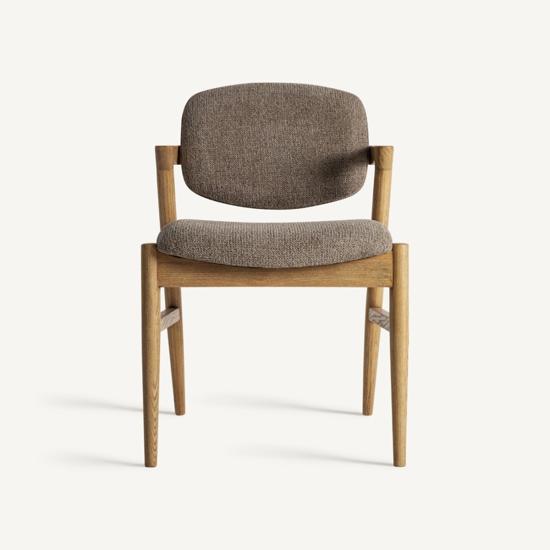 La Silla Namur de Vical Home combina estructura en madera de fresno marrón con tapicería en lino y algodón color topo, creando una silla de comedor elegante, cómoda y de estilo natural refinado. Ideal para quienes buscan una silla tapizada beige/topo moderna con presencia discreta y diseño atemporal.