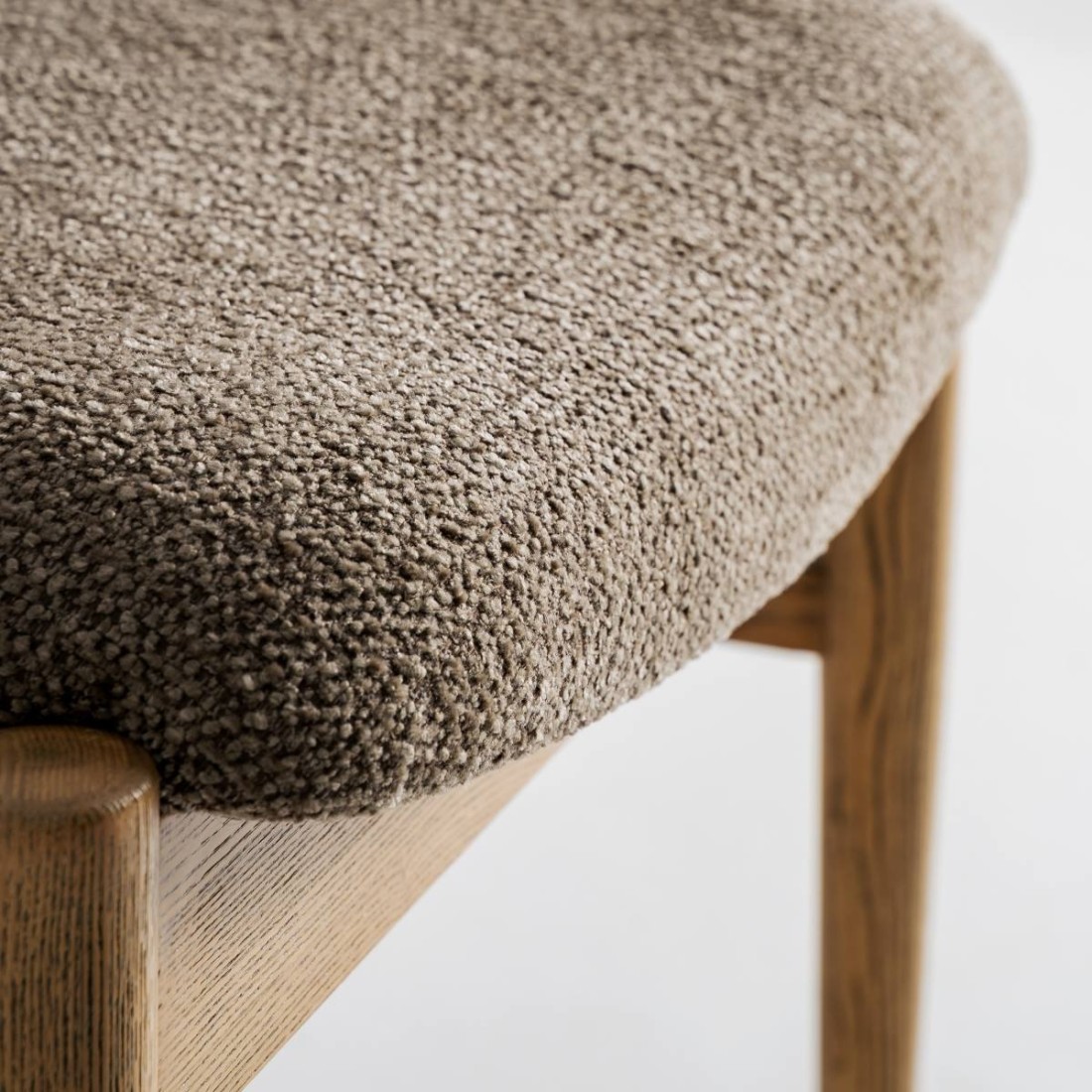 La Silla de comedor Namur de Vical Home destaca por su diseño depurado y su equilibrio entre materiales nobles. La estructura en madera de fresno marrón aporta solidez y calidez, mientras que la tapicería en lino y algodón en tono topo ofrece suavidad visual y confort.