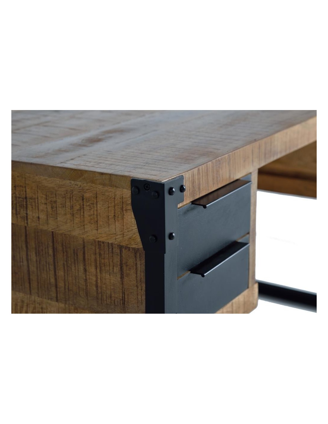El escritorio Ref. 1204 de Giner y Colomer combina la calidez de la madera de mango natural con la firmeza de su base metálica, ofreciendo un diseño equilibrado entre estilo natural y carácter contemporáneo. Con 4 cajones funcionales, es perfecto tanto para despacho como para zona de trabajo en casa.