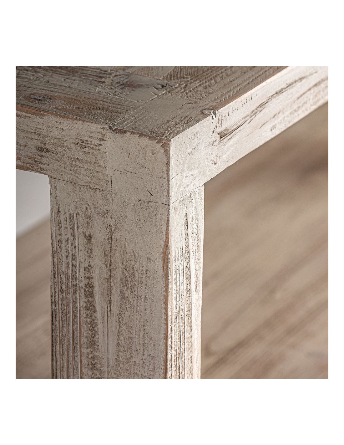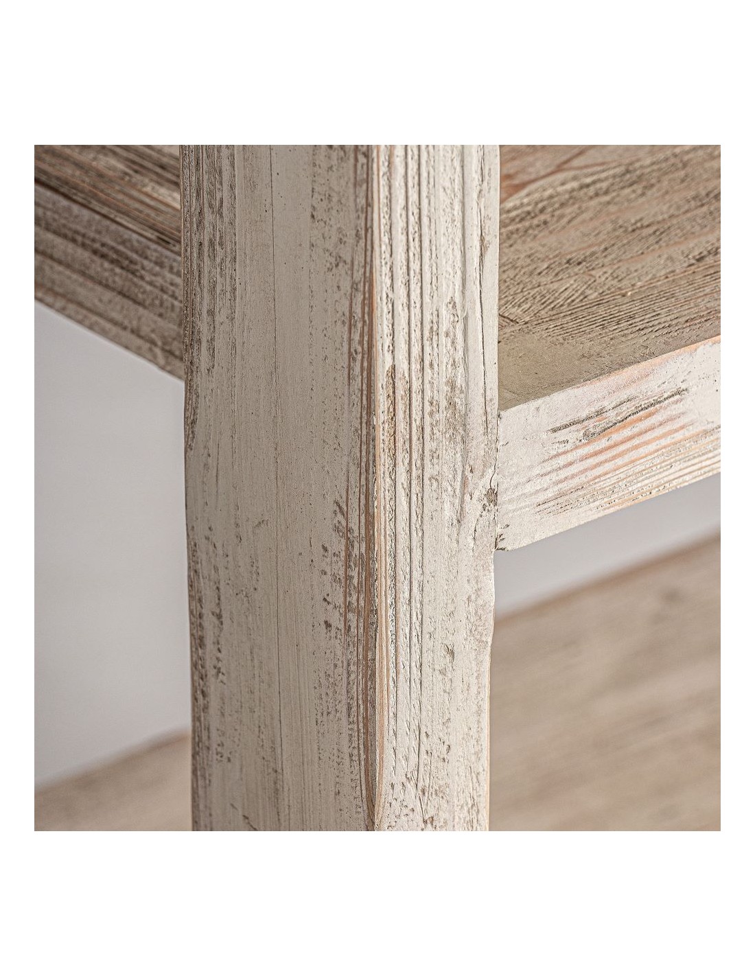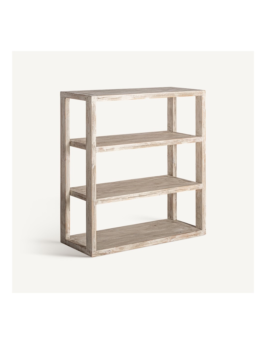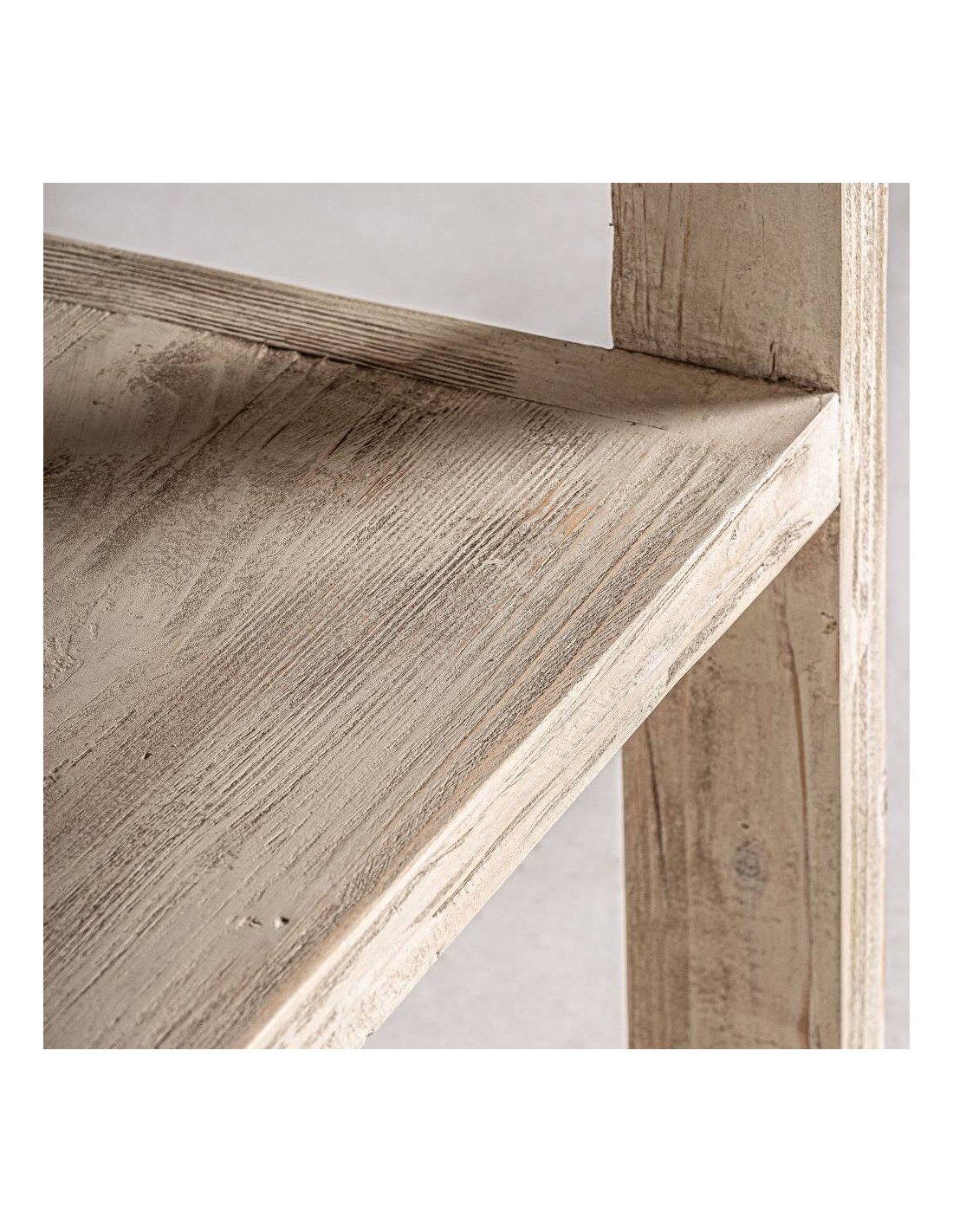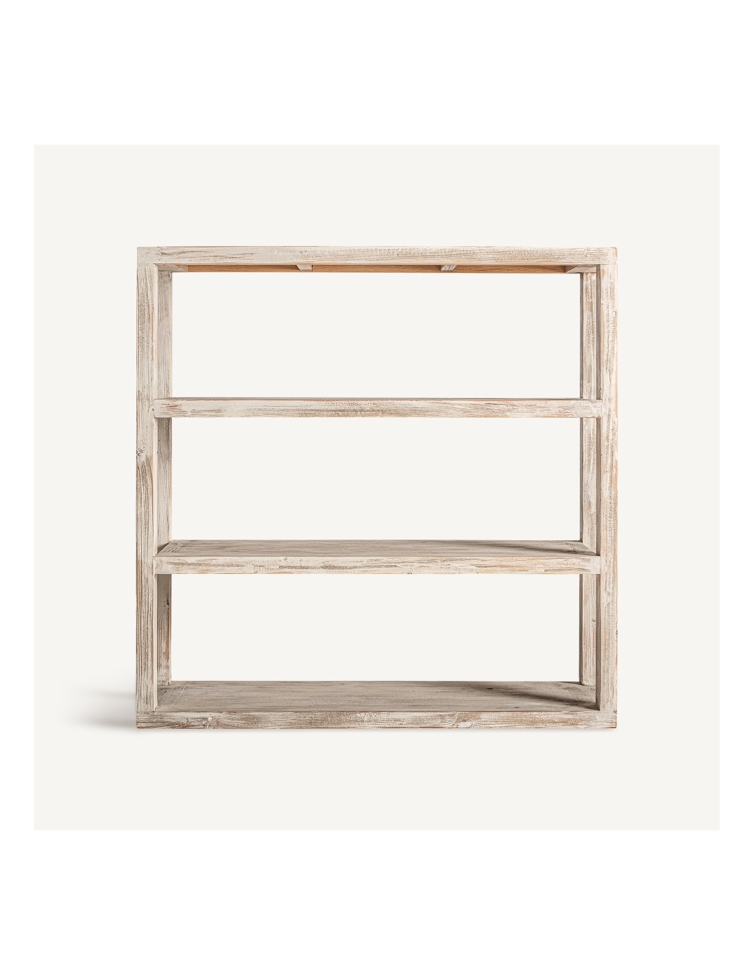 El uso de madera reciclada aporta un carácter único: cada pieza posee vetas, texturas y matices diferentes, haciendo que cada estantería sea exclusiva. Su acabado blanco aporta luminosidad y frescura, contribuyendo a crear un entorno acogedor y equilibrado.