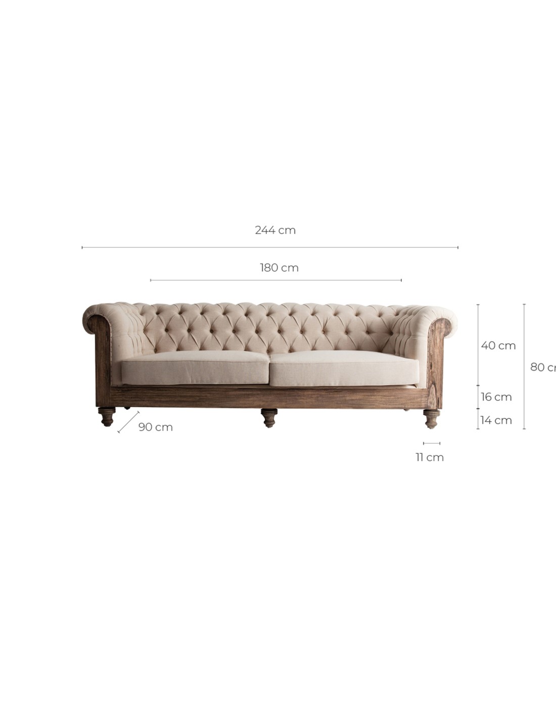 SOFÁ GORE, DE ESTILO VINTAGE. FABRICADO EN MADERA TROPICAL, EN COLOR BEIGE, COMBINADO CON POLIÉSTER. PRODUCTO DESENFUNDABLE.