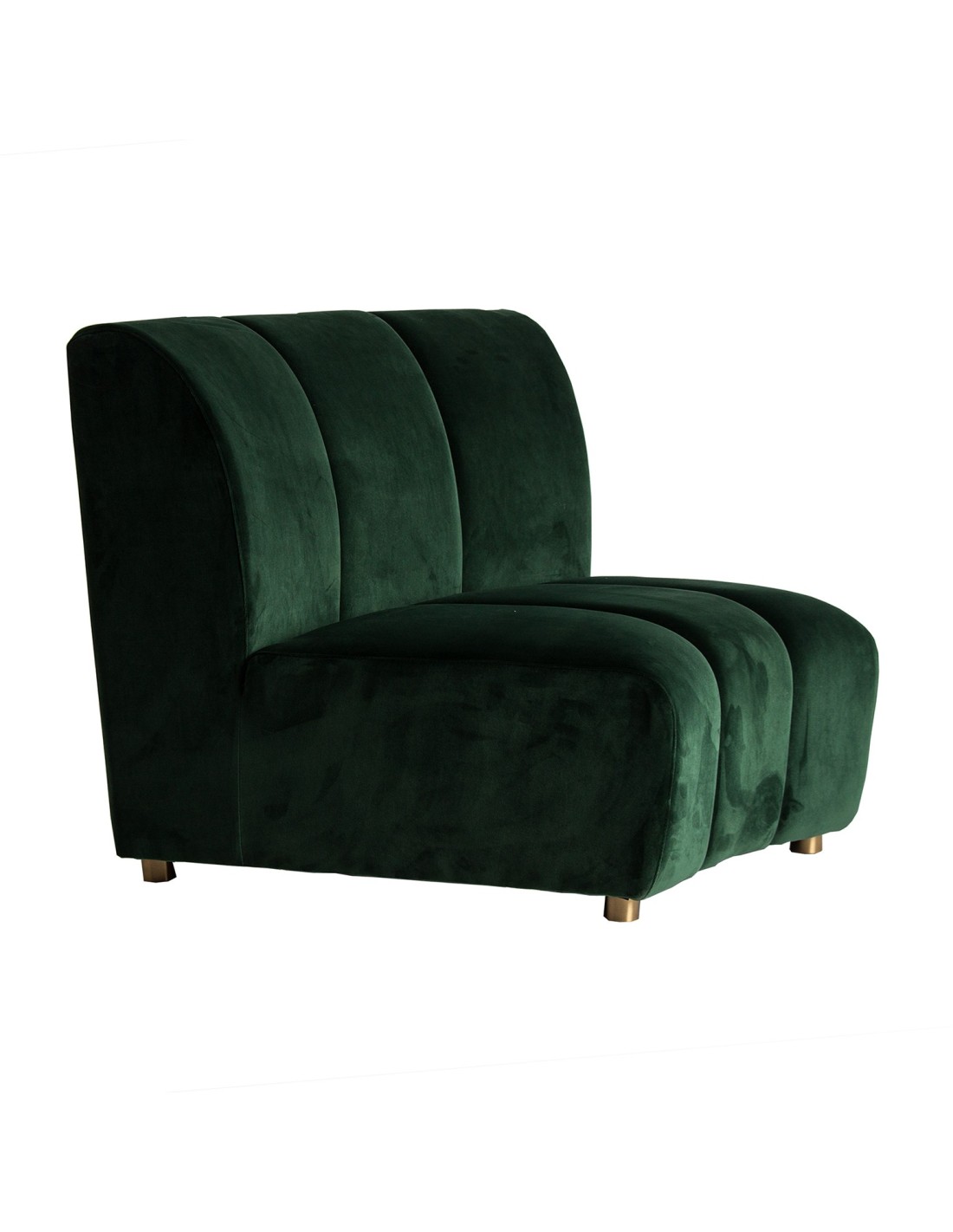 MÓDULO SOFÁ CENTRAL SHUL, EN COLOR VERDE, DE ESTILO CONTEMPORÁNEO. FABRICADO EN TERCIOPELO, COMBINADO CON ESPUMA Y POLIÉSTER. COMPATIBLE CON: CON 6 MÓDULOS HACE UNA SEMICIRCUNFERENCIA DE 6,48 MTS.