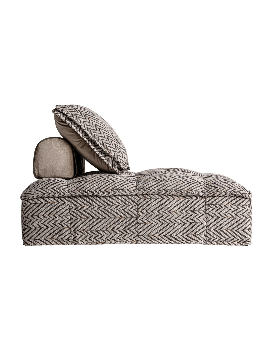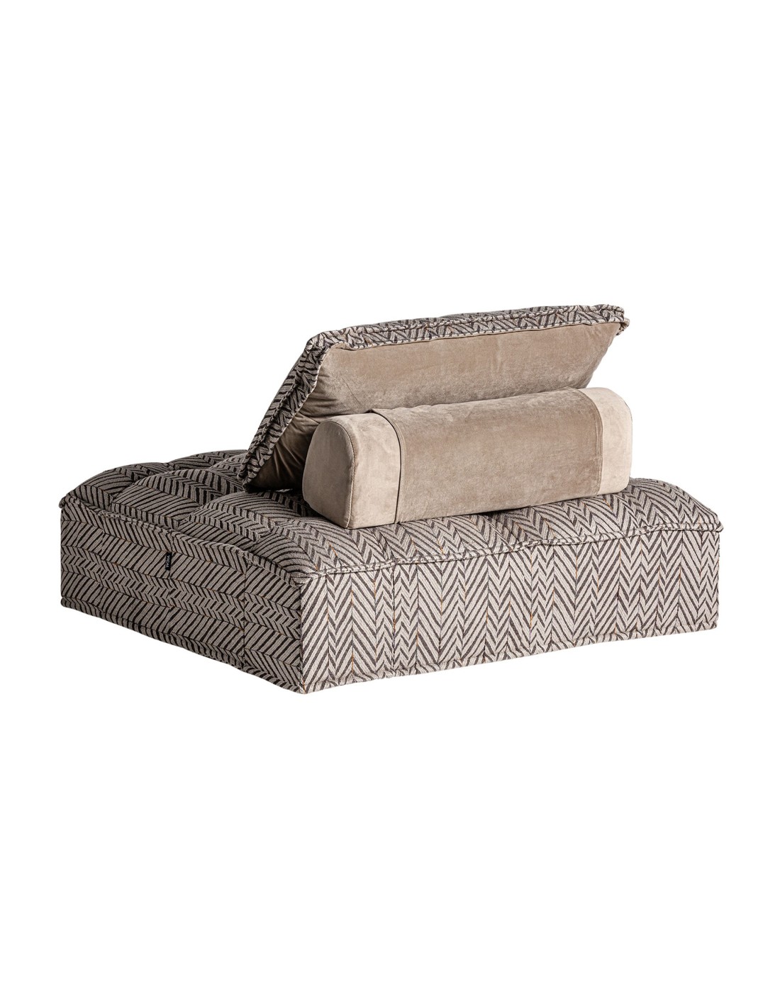 SOFÁ MODULAR ENCS, EN COLOR MARRÓN ESTAMPADO, DE ESTILO CONTEMPORÁNEO. FABRICADO EN POLIÉSTER, COMBINADO CON TERCIOPELO Y LINO. PRODUCTO DESMONTABLE, DESENFUNDABLE. COMPATIBLE CON: 27368.