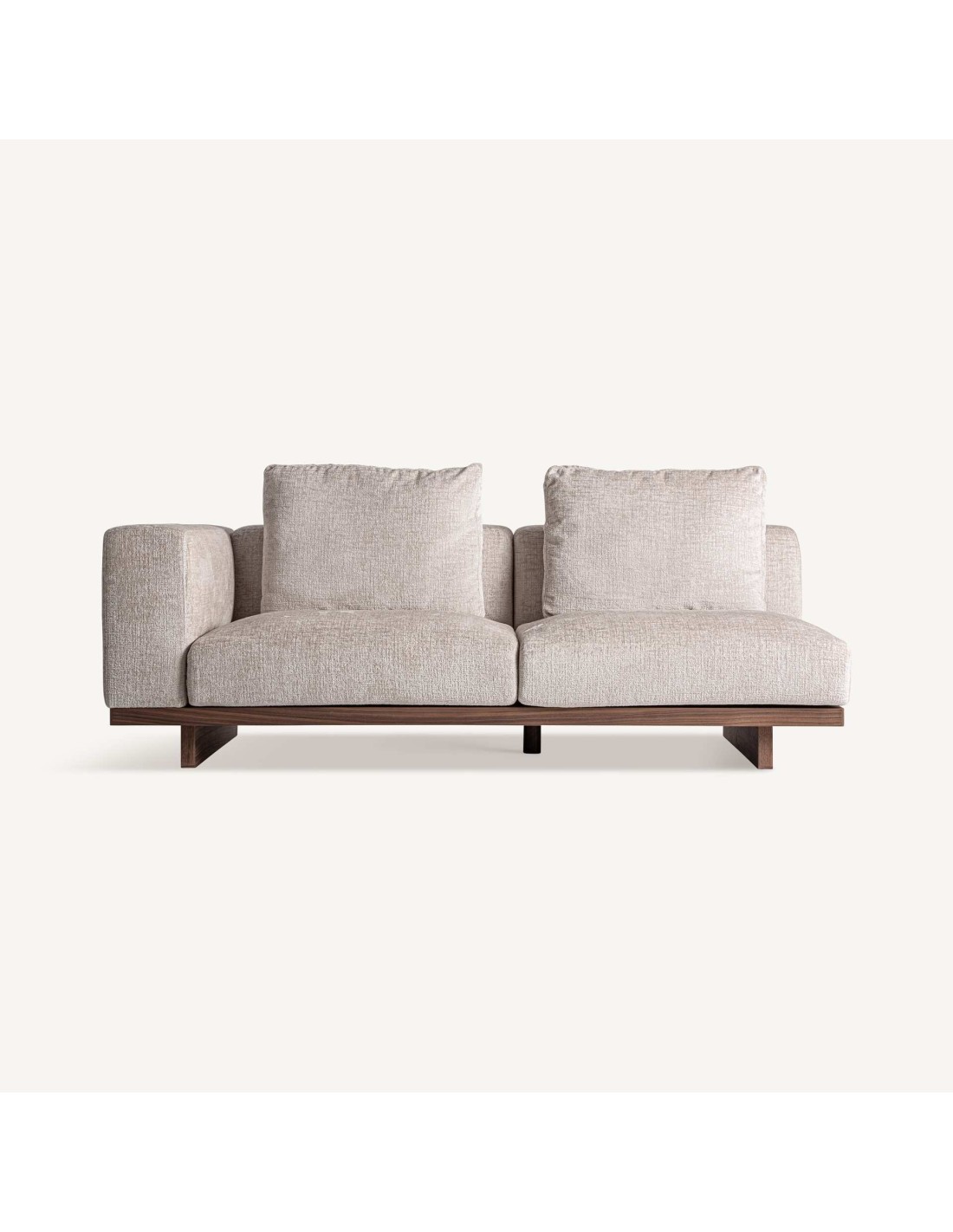 El sofá modular Metti de Vical Home combina estilo contemporáneo, funcionalidad y confort. Tapizado en poliéster color topo, con detalles en madera DM marrón y espuma de alta calidad. Desenfundable y desmontable.