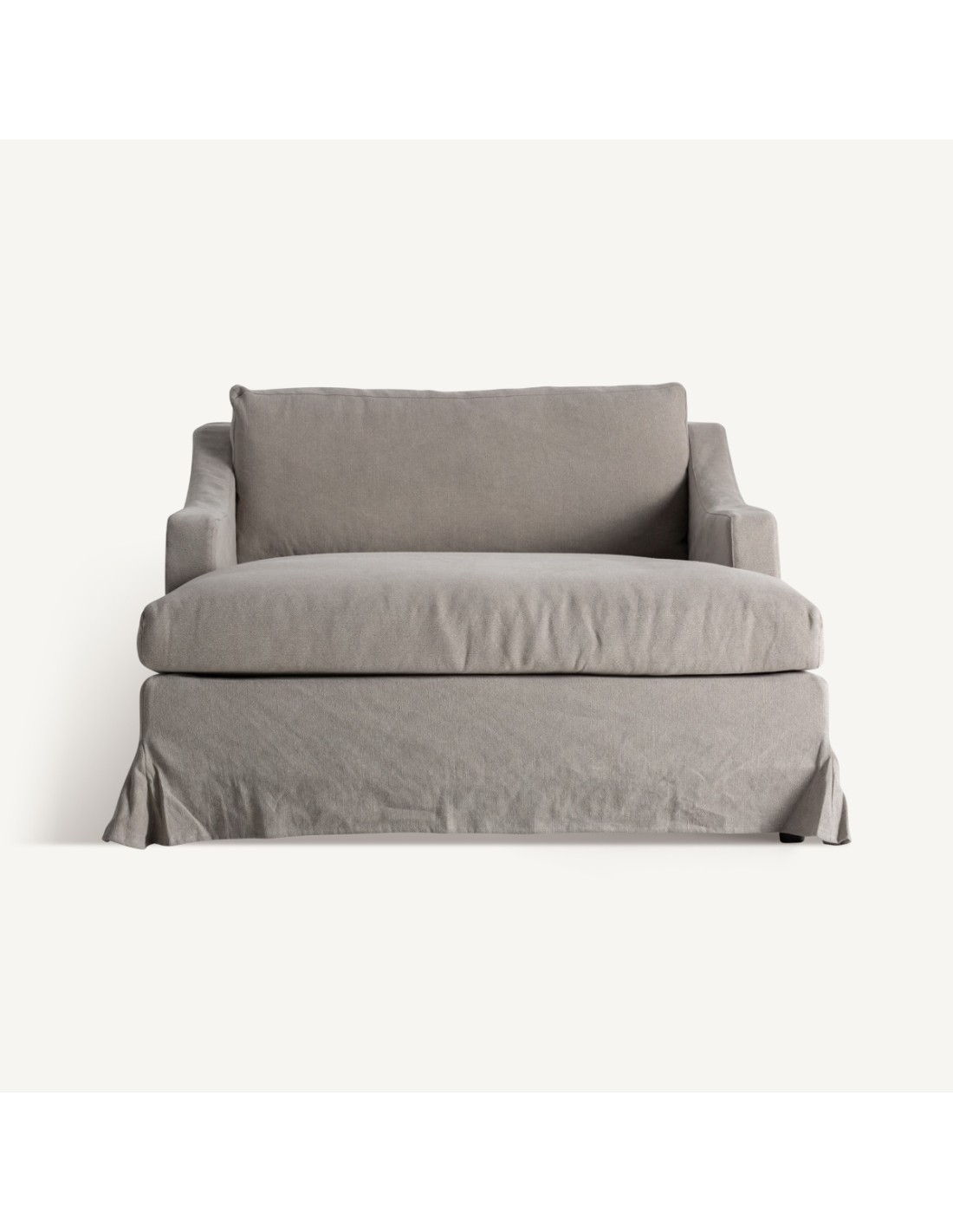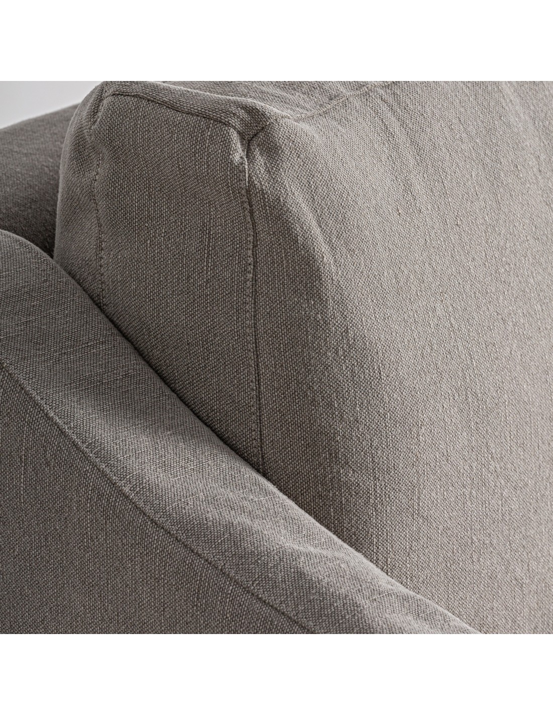 Fabricado con una estructura robusta, está tapizado en una mezcla de lino y algodón en color gris neutro, ideal para integrarse en ambientes modernos, escandinavos o minimalistas. El relleno de espuma de alta densidad garantiza una sentada envolvente, perfecta para momentos de descanso, lectura o relax.