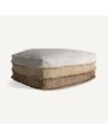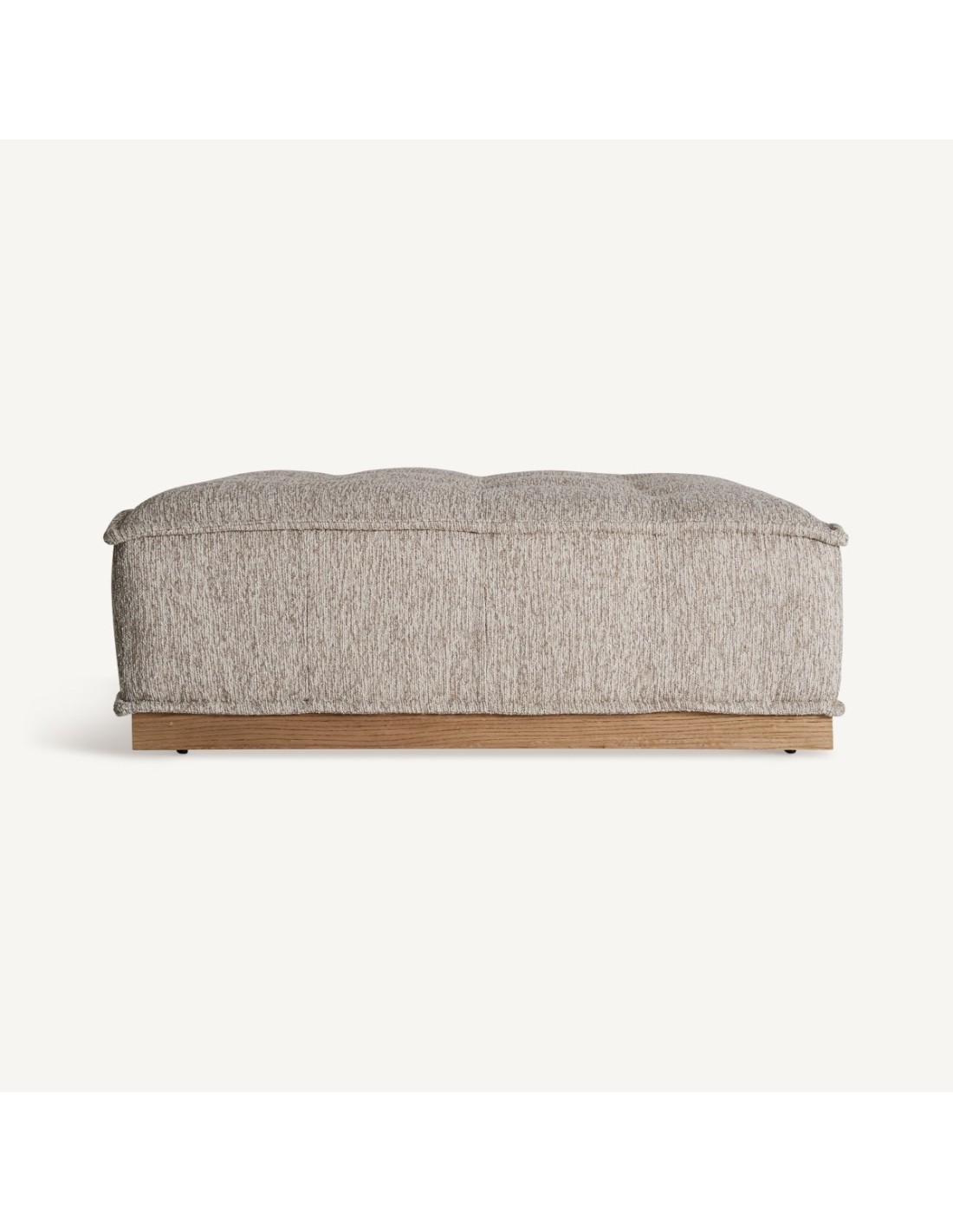 Aporta elegancia y calidez a tu espacio con este puff redondo de la firma Vical Home. Tapizado en poliéster beige y base de madera de pino en tono marrón, combina comodidad y diseño artesanal en una sola pieza.
