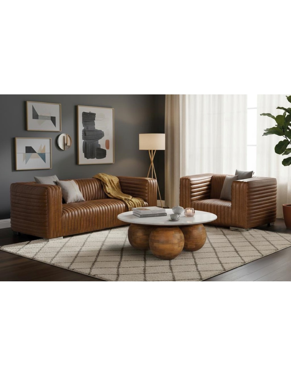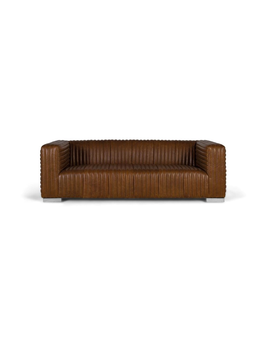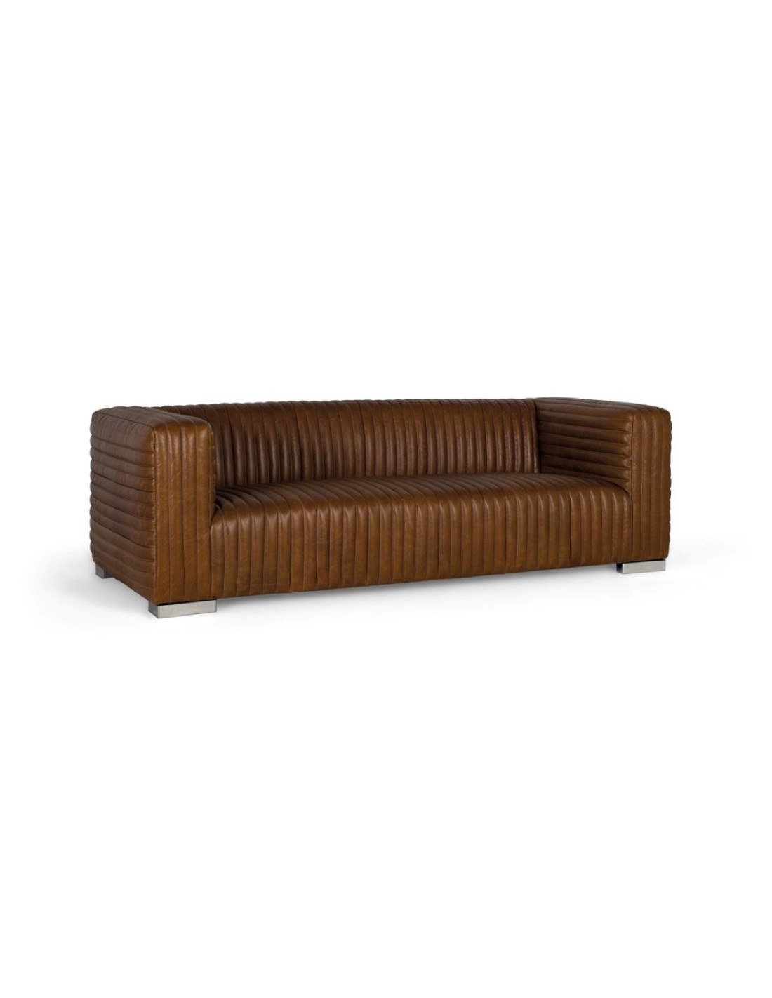 Sofá 3 Plazas de Piel Marrón Giner y Colomer – Elegancia y Diseño Contemporáneo