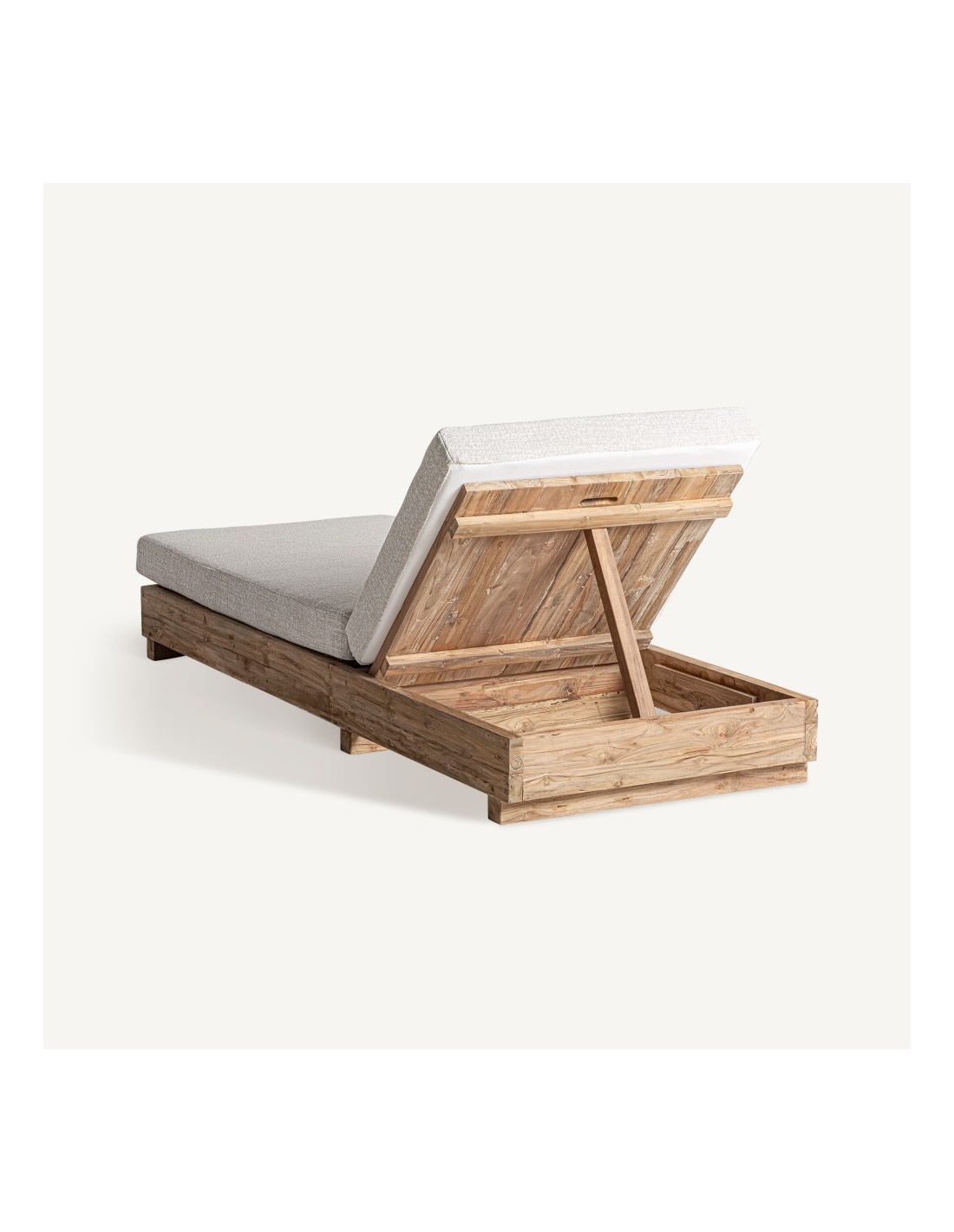 La Tumbona Pure de Vical Home es una invitación al descanso con el encanto del diseño sostenible. Su estructura, elaborada con madera de teca reciclada en color marrón, refleja la calidez y la durabilidad de los materiales naturales, mientras que su tapizado en polipropileno reciclado blanco aporta suavidad y resistencia al uso exterior.