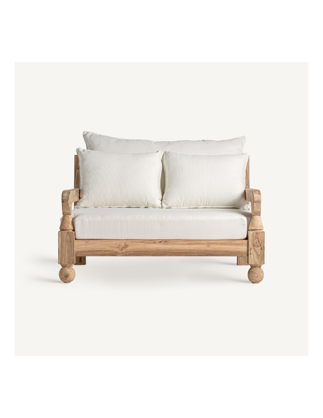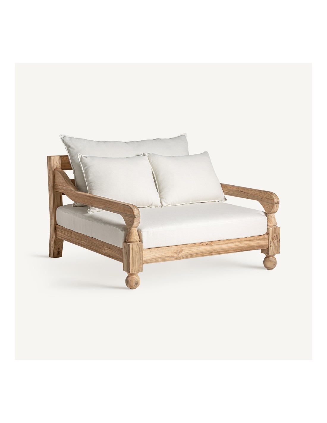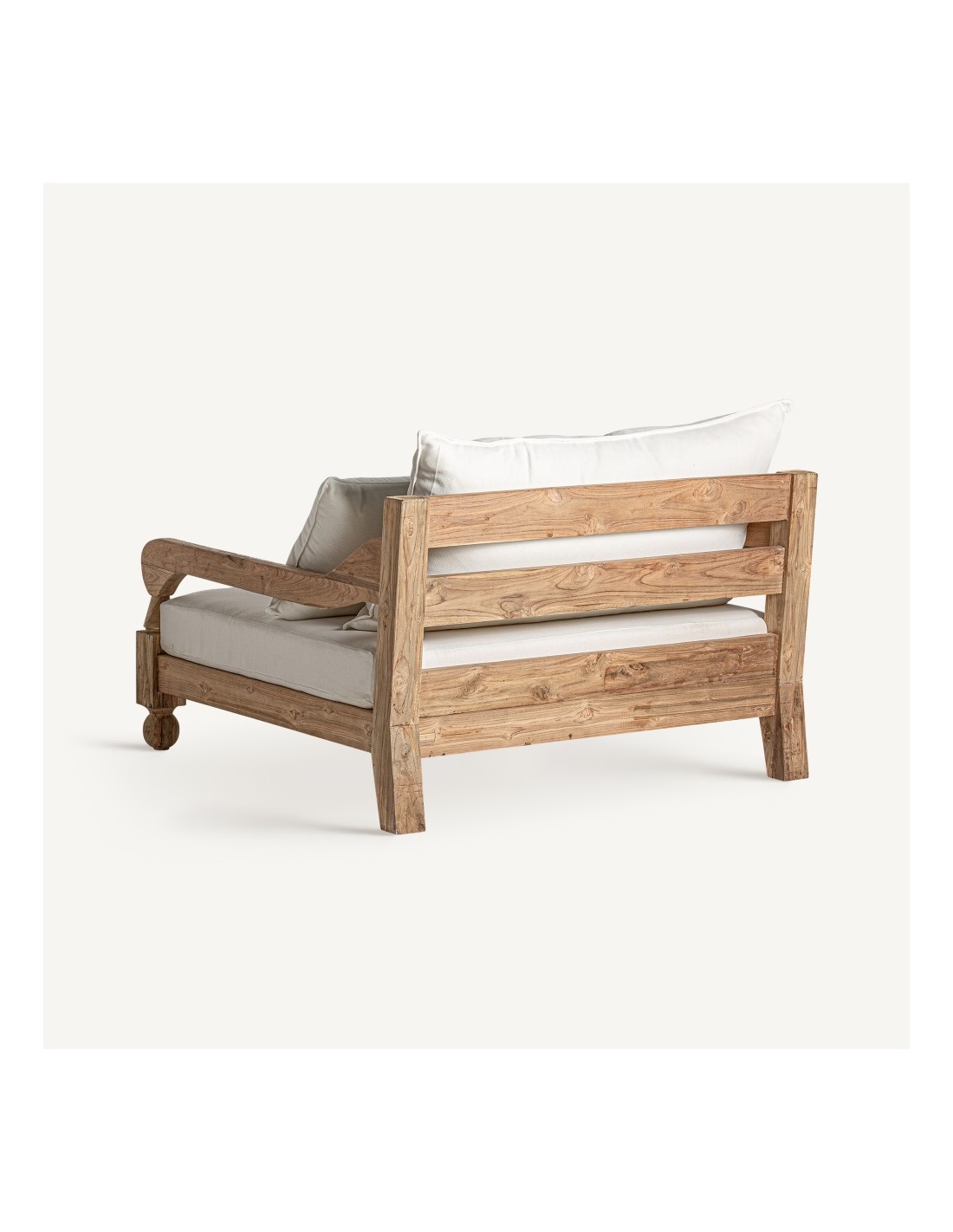 Vical Home combina sostenibilidad y diseño artesanal en el sofá Jodphur. La teca reciclada garantiza durabilidad y respeto por el medio ambiente, mientras que el tapizado desenfundable facilita su limpieza y mantenimiento.