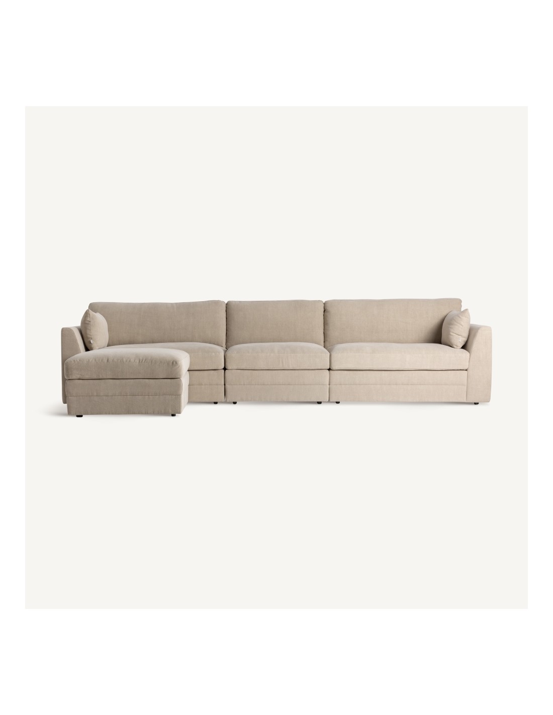 El prestigio de Vical Home se refleja en cada detalle del Módulo Sofá Esquinero Otley. Su tapizado en poliéster de alta calidad garantiza resistencia al uso diario, mientras que su estructura de madera maciza aporta estabilidad y durabilidad.