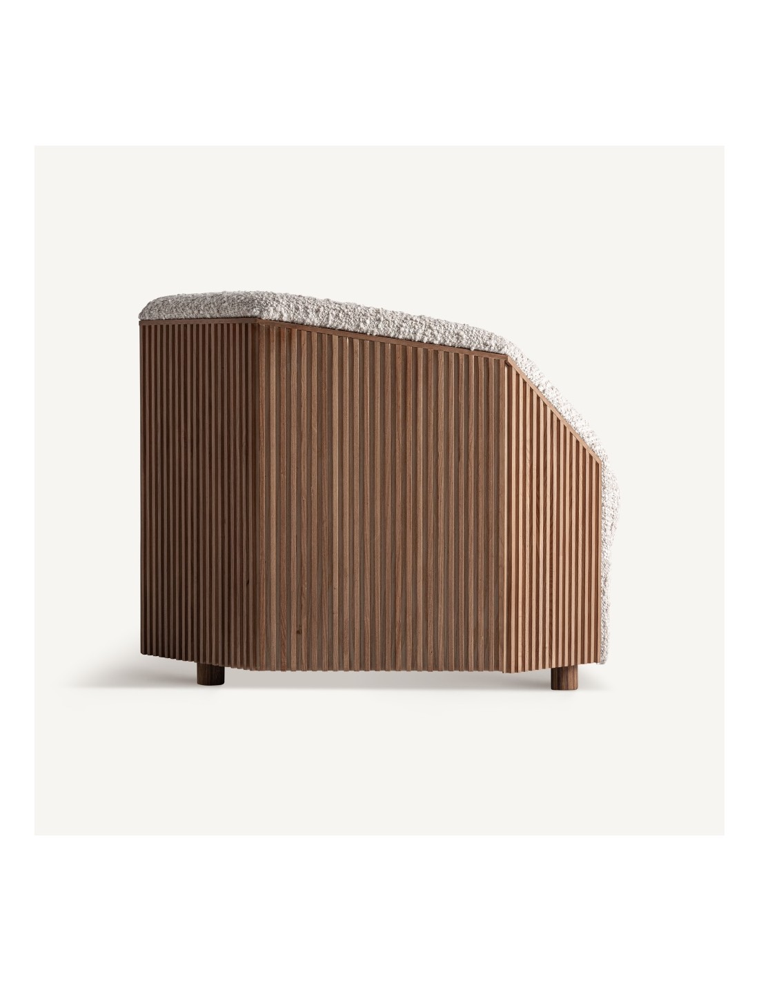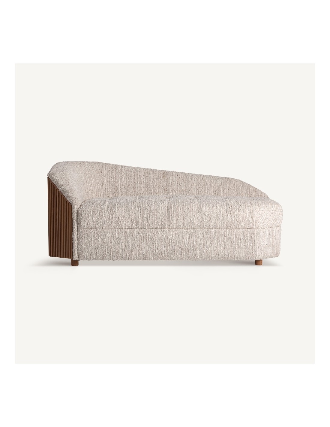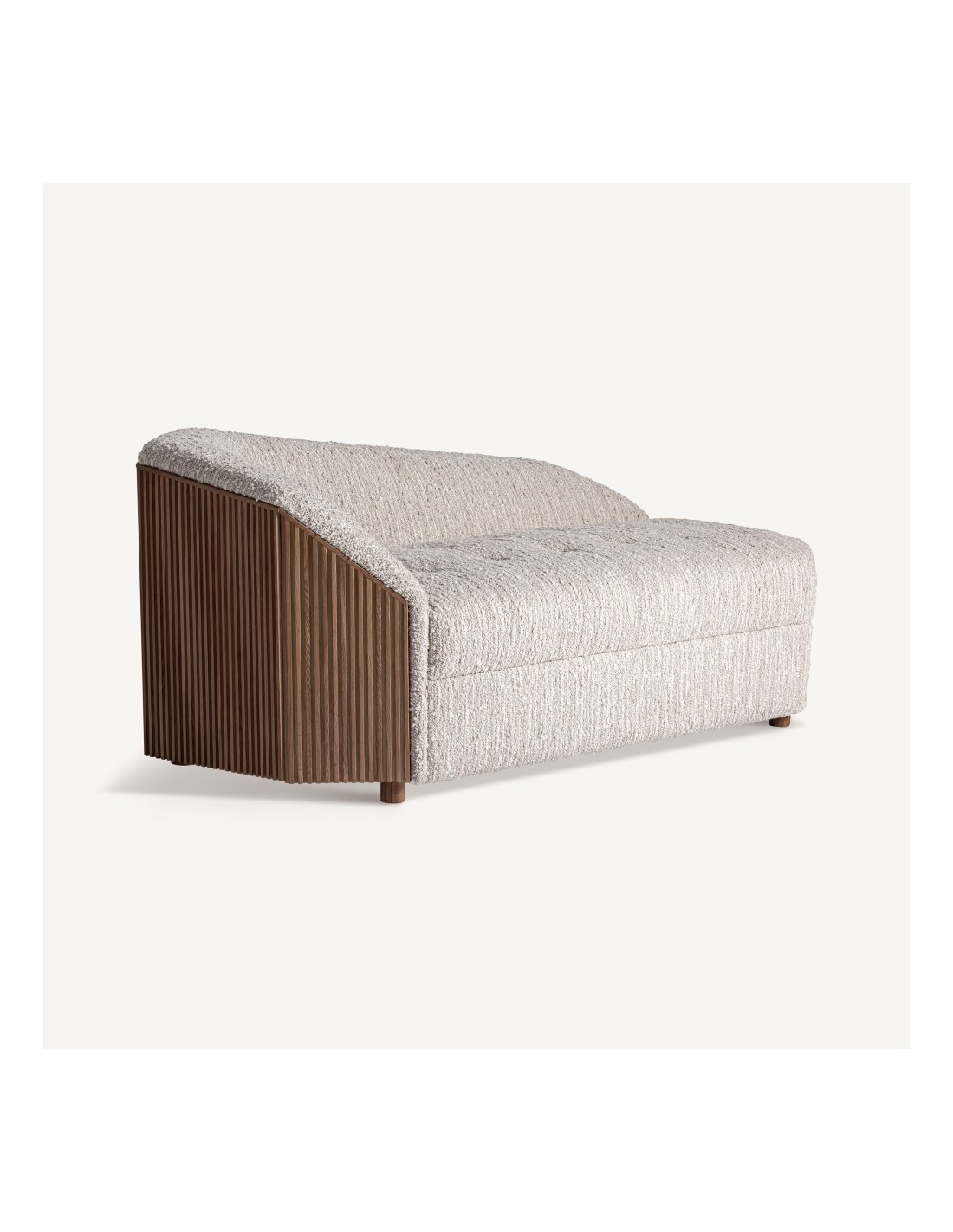 Sofá Windek de estilo contemporáneo, tapizado en poliéster beige, con espuma de alta densidad y estructura en madera de roble marrón. Una pieza elegante y cómoda de Vical Home, perfecta para salones modernos y ambientes cálidos.