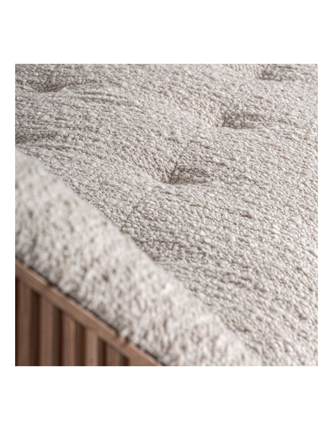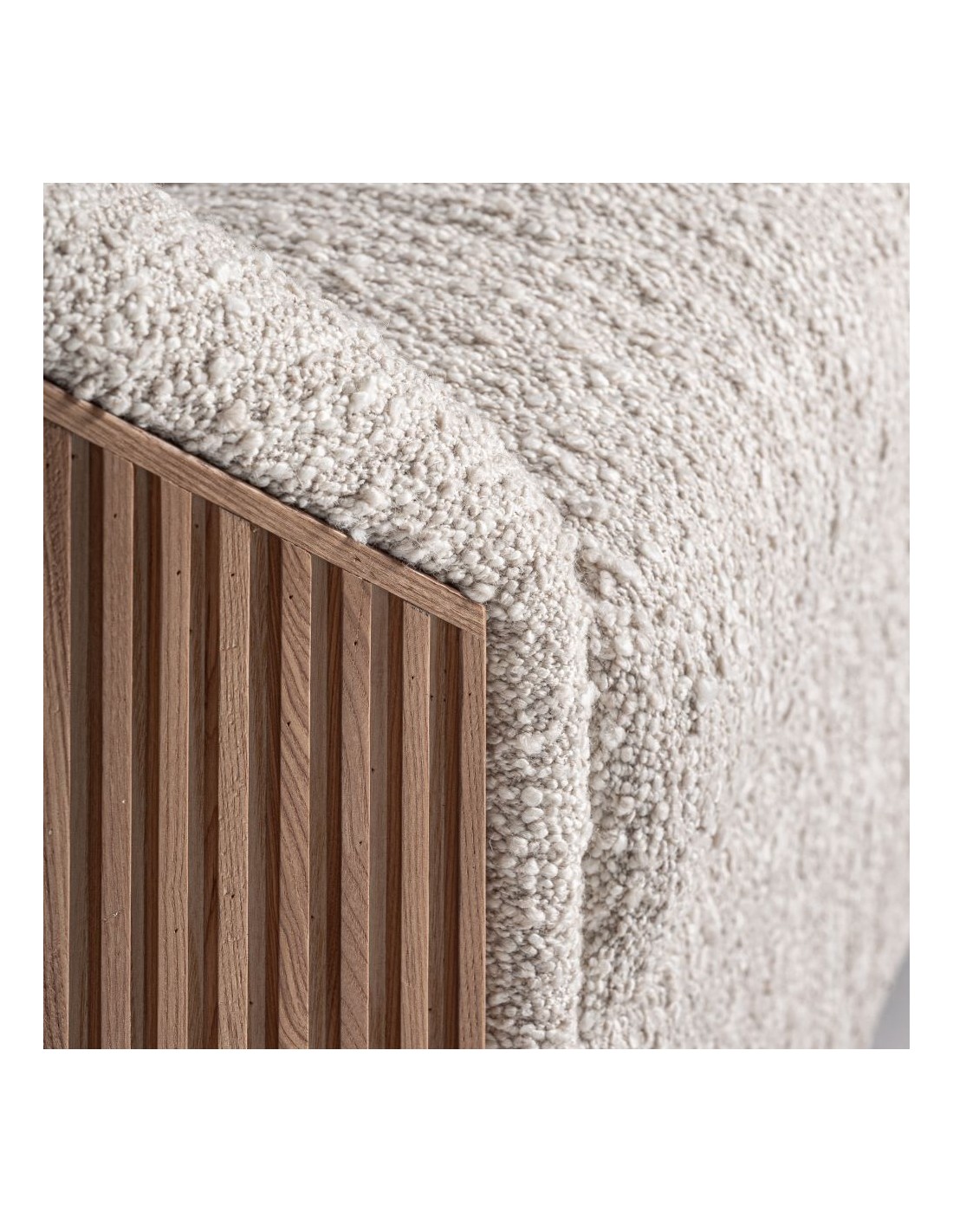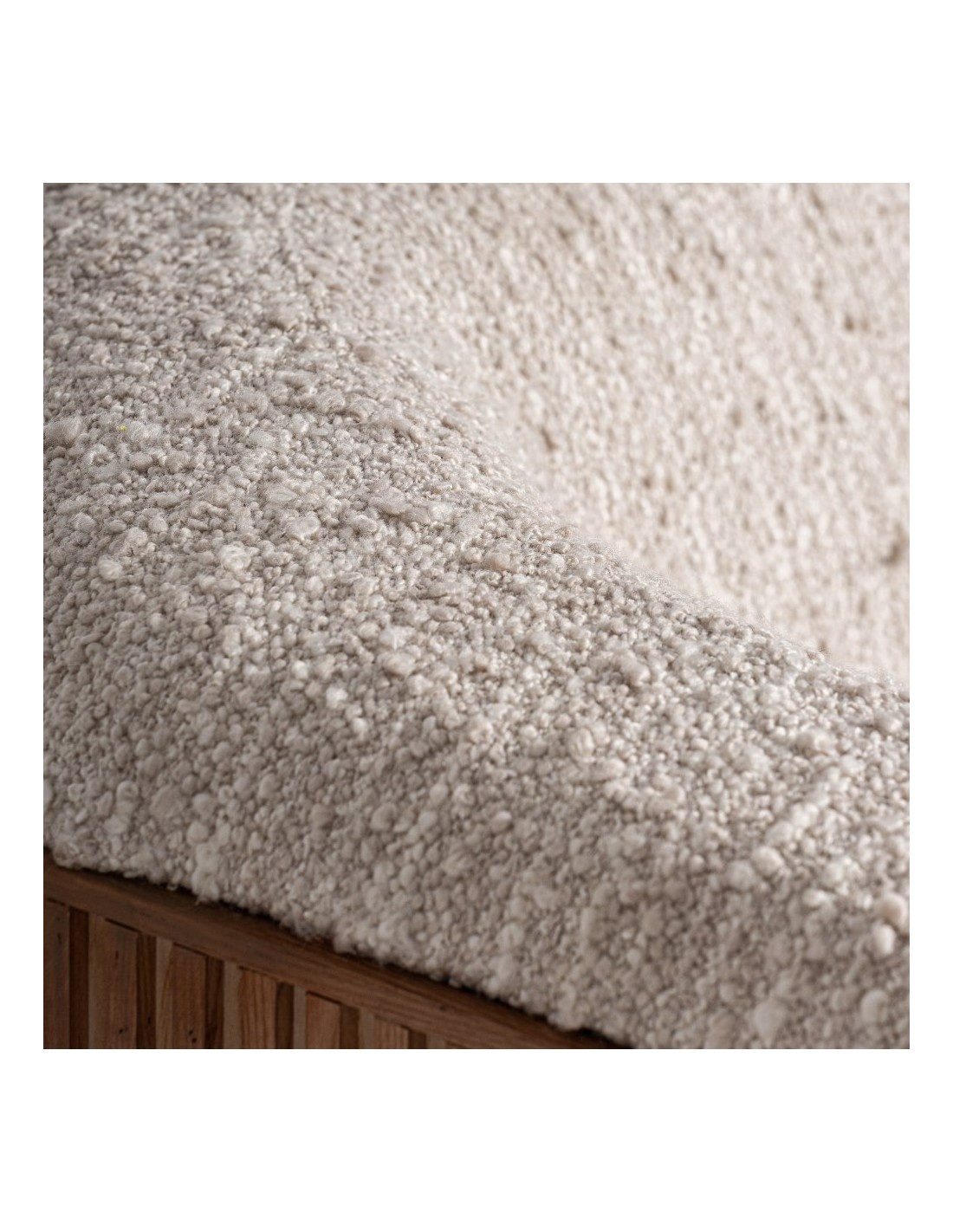 El sofá Windek combina confort, estilo y materiales de alta calidad. Su tapizado en poliéster beige ofrece un tacto suave y resistente, mientras que la estructura en madera de roble garantiza estabilidad y durabilidad.