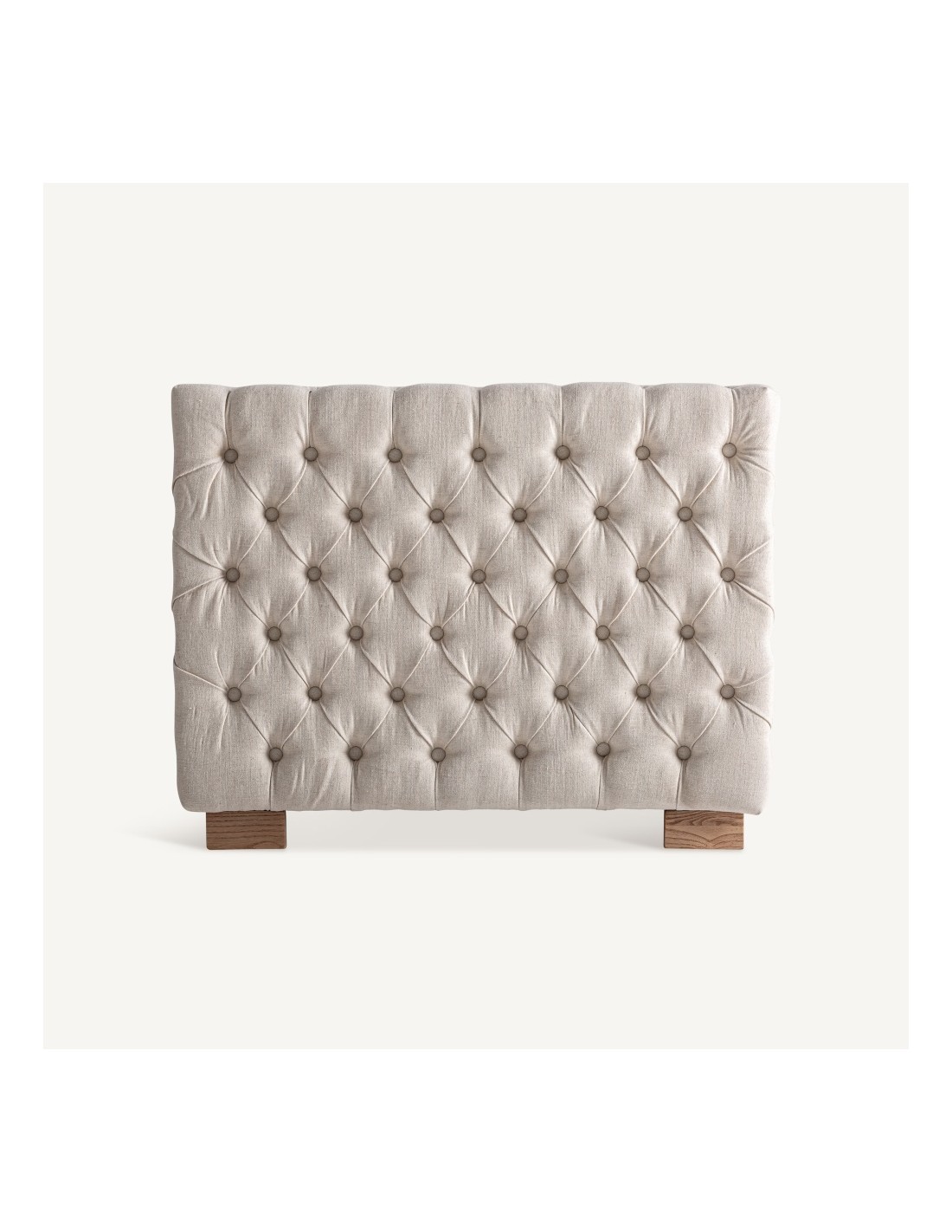 La estructura está fabricada en madera de fresno en color marrón claro, un material resistente y duradero que aporta estabilidad y un acabado natural. El tapizado en terciopelo color beige ofrece un tacto suave y un aspecto sofisticado, fácil de integrar en diferentes estilos decorativos.