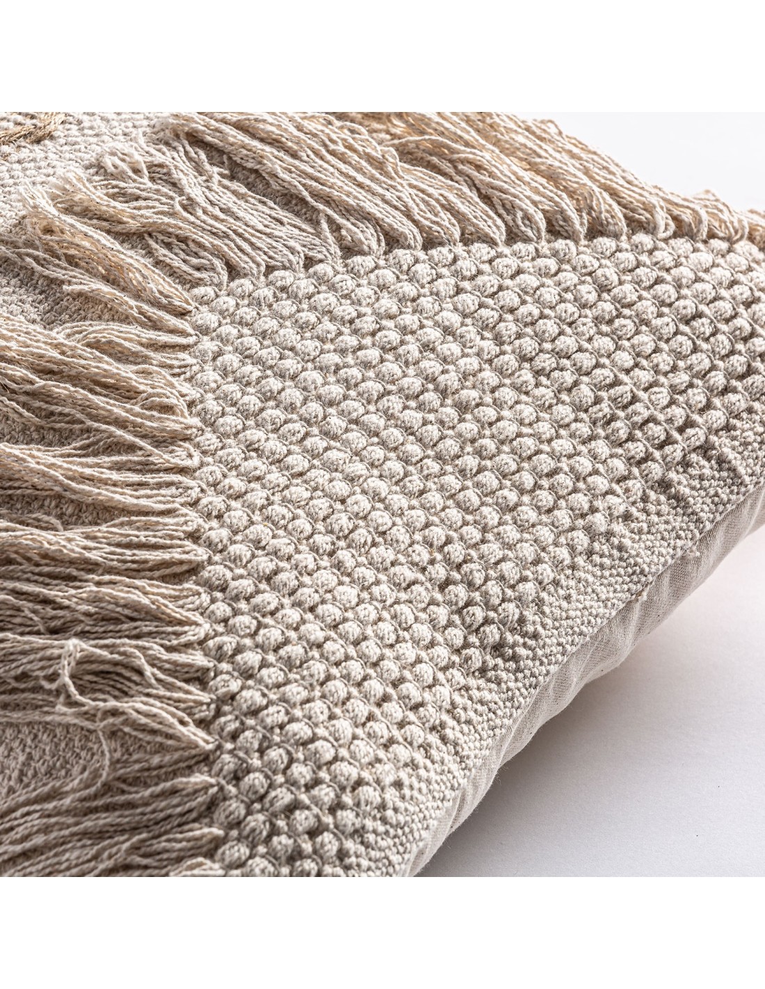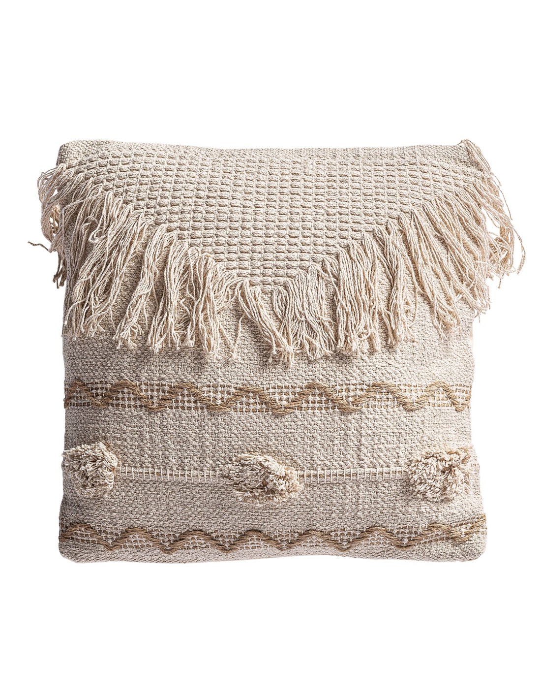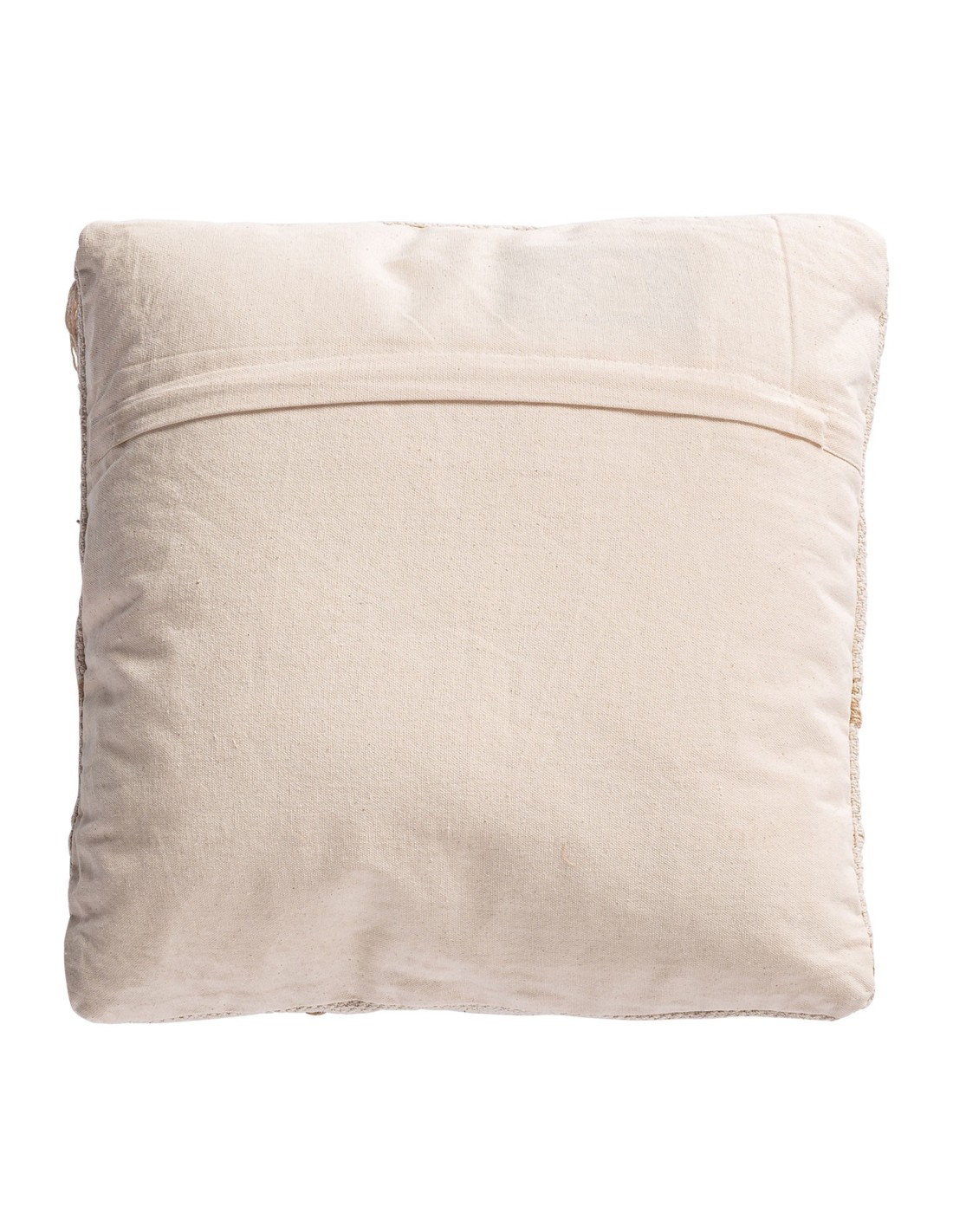 COJÍN YAIRA, EN COLOR BLANCO/NATURAL BORDADO, DE ESTILO VINTAGE. FABRICADO EN YUTE, COMBINADO CON ALGODÓN. PRODUCTO DESENFUNDABLE.