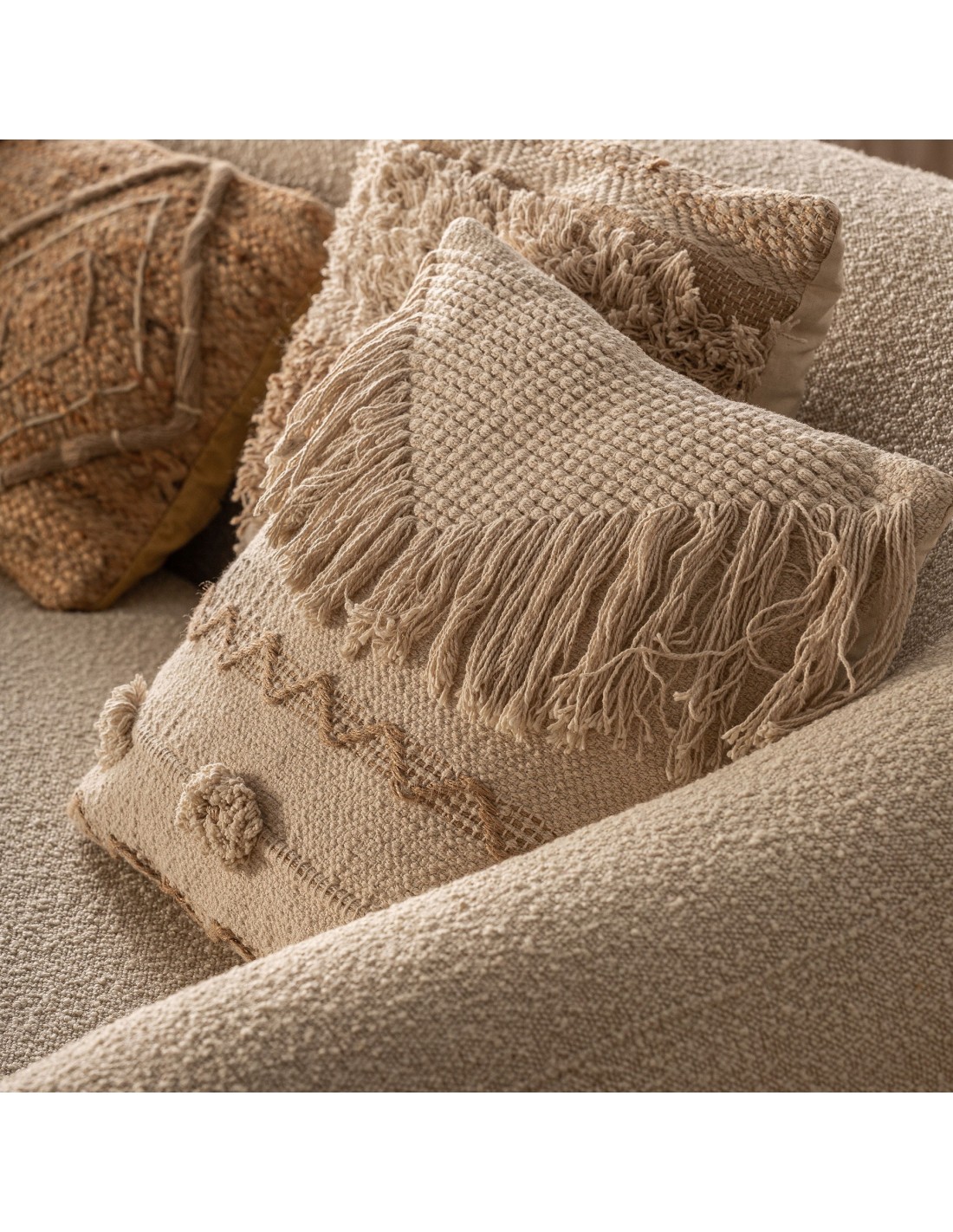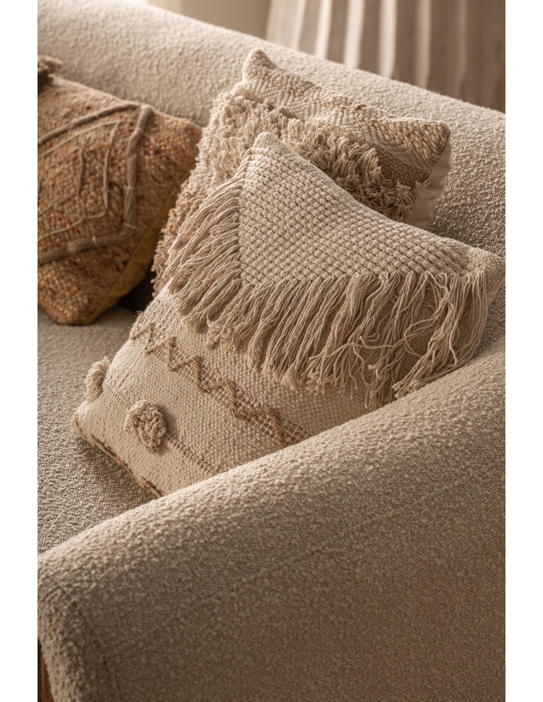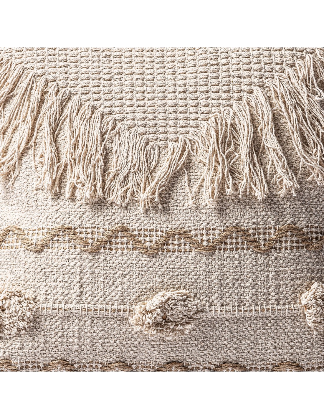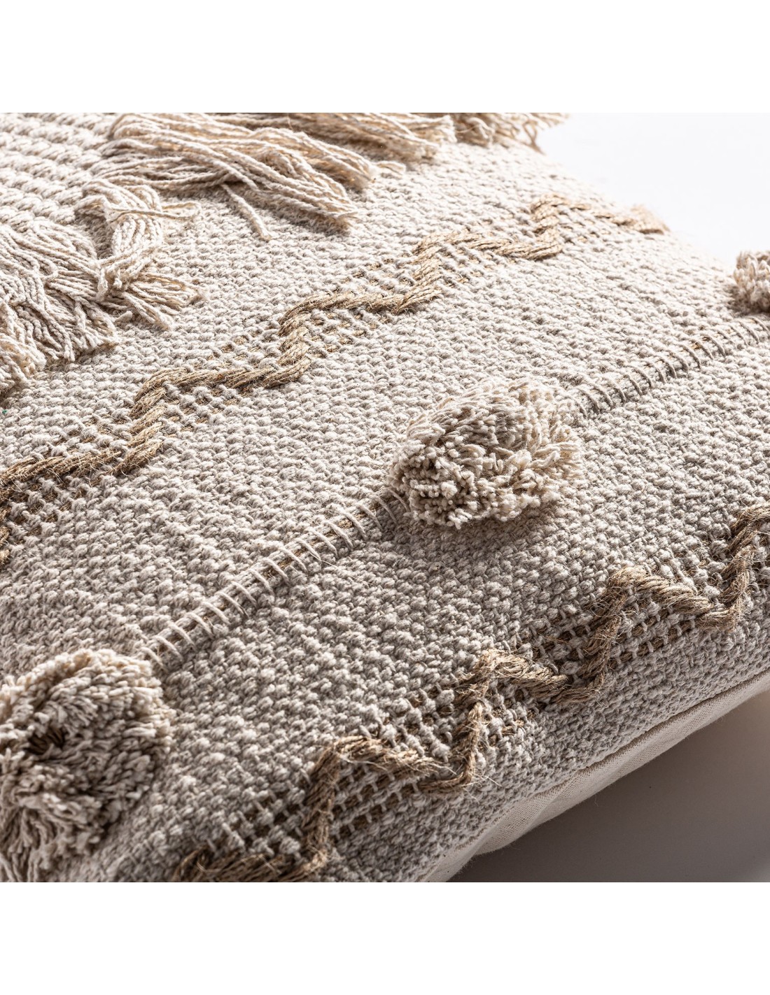 COJÍN YAIRA, EN COLOR BLANCO/NATURAL BORDADO, DE ESTILO VINTAGE. FABRICADO EN YUTE, COMBINADO CON ALGODÓN. PRODUCTO DESENFUNDABLE.