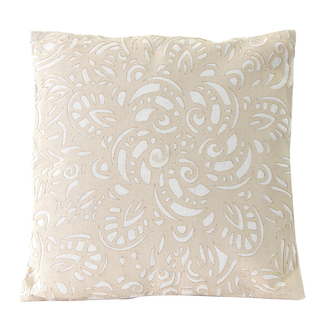 COJÍN CUADRADO NURA, EN COLOR BEIGE, DE ESTILO SHABBY CHIC. FABRICADO EN POLIÉSTER, COMBINADO CON ALGODÓN Y LINO.
