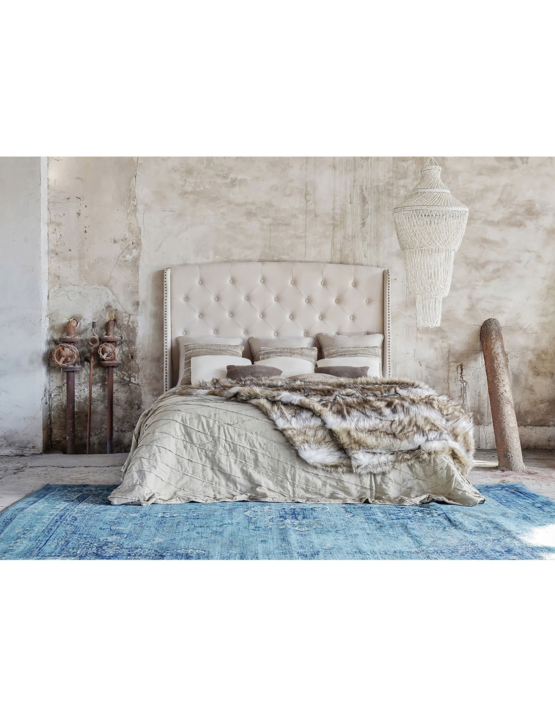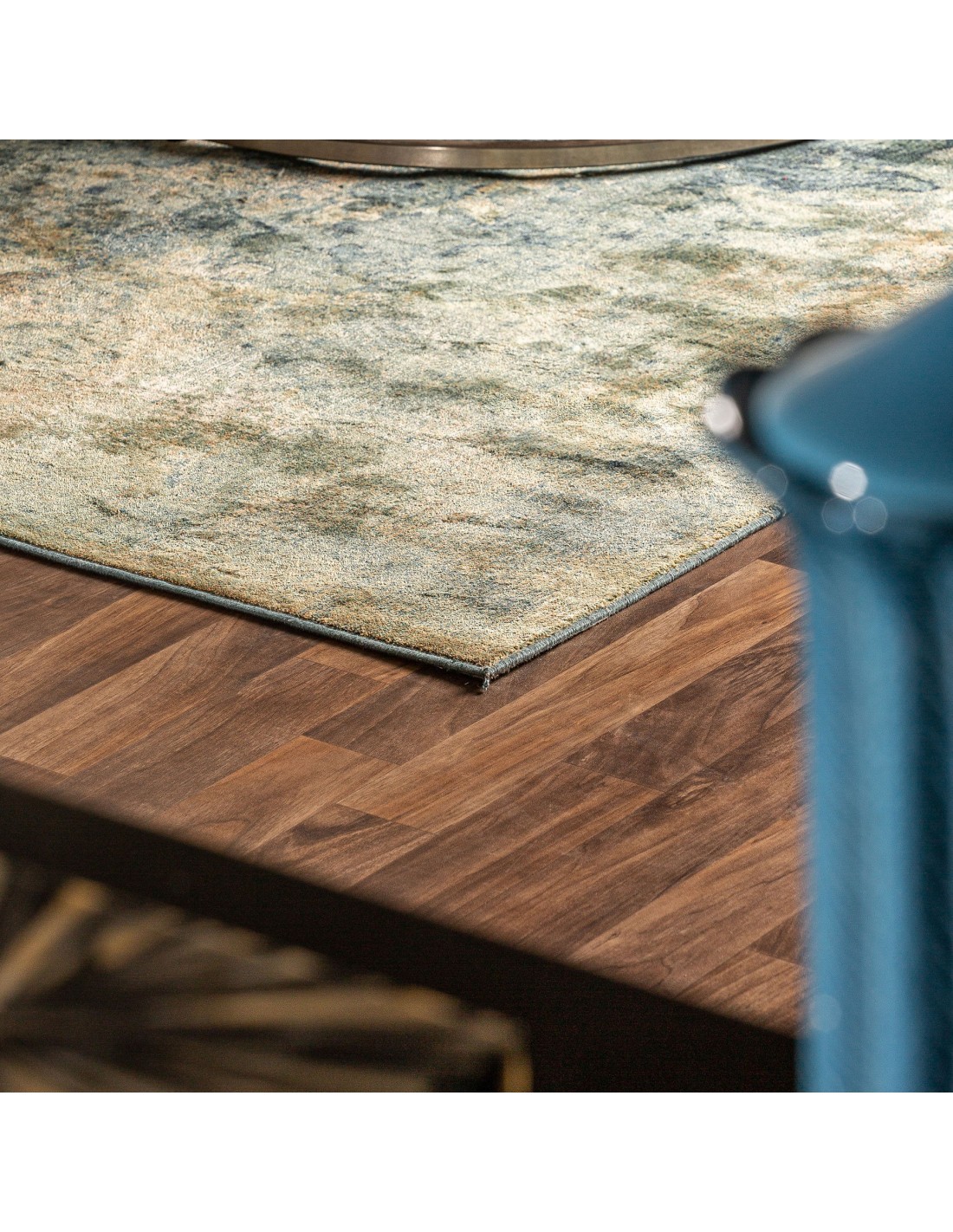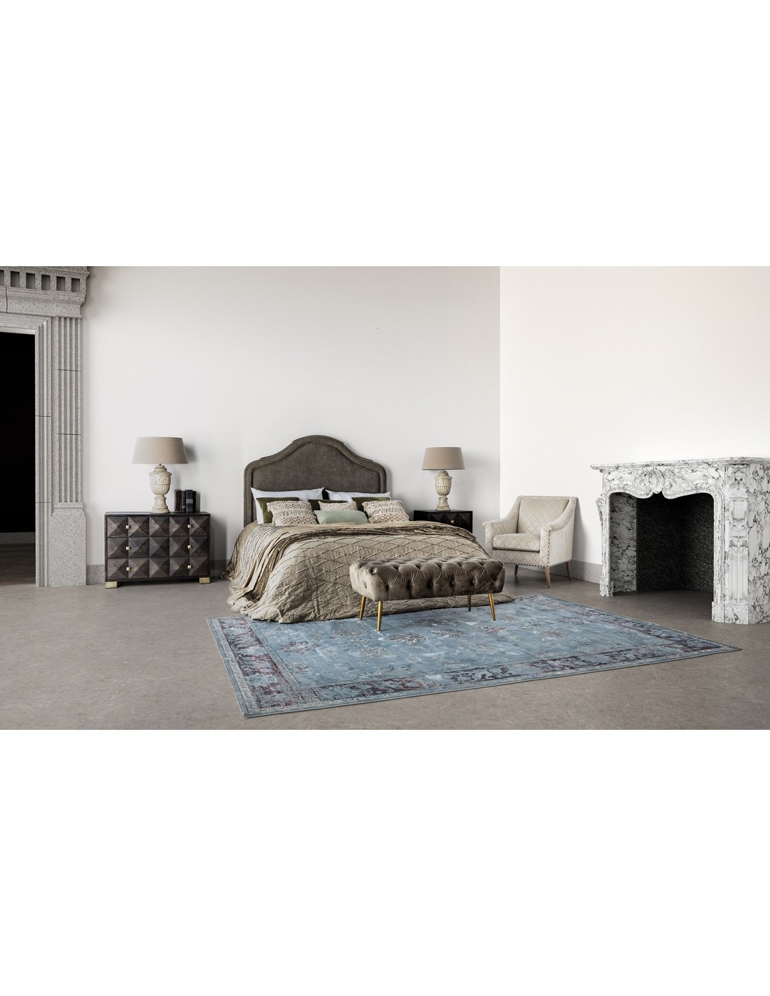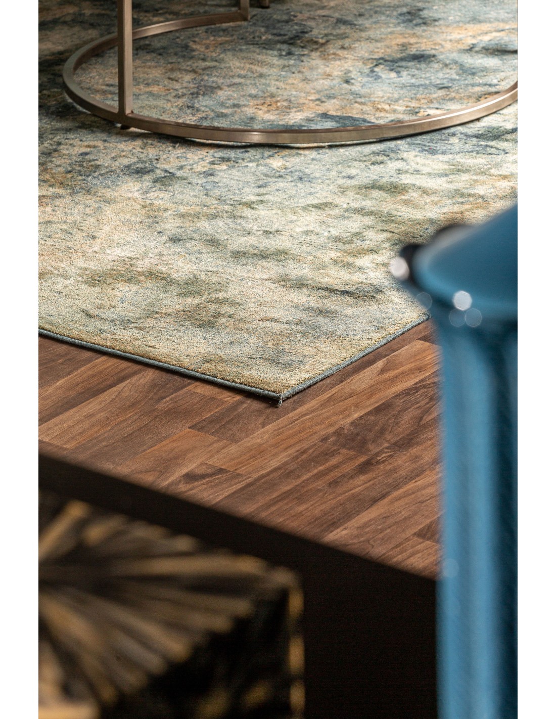 ALFOMBRA RECTANGULAR MIRTA, EN COLOR TURQUESA, DE ESTILO CLÁSICO. FABRICADO EN VISCOSA. BACKING: 43% ALGODÓN, 33% POLIÉSTER, 20% LATEX, 4% VISCOSA.