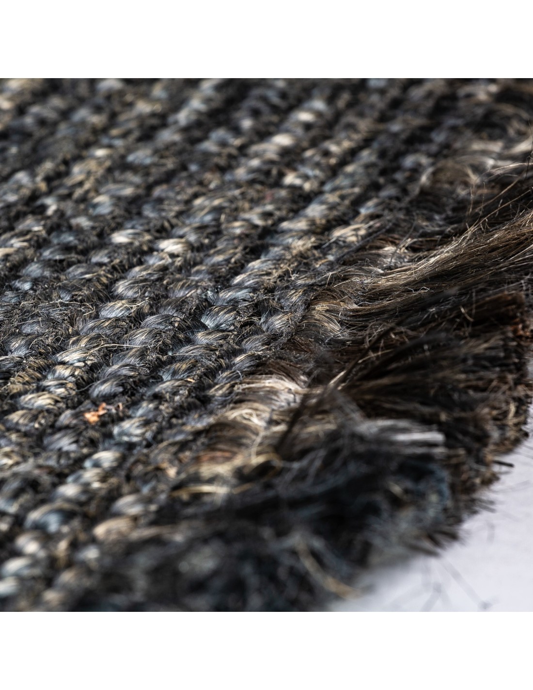 ALFOMBRA RECTANGULAR KISAI, EN COLOR NEGRA TEÑIDO, DE ESTILO COLONIAL. FABRICADO EN YUTE.
