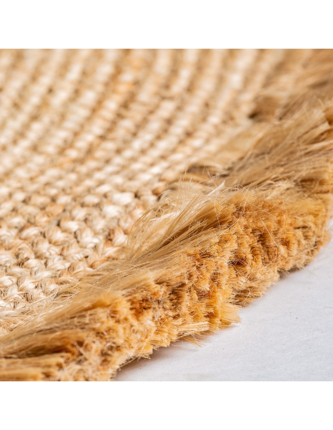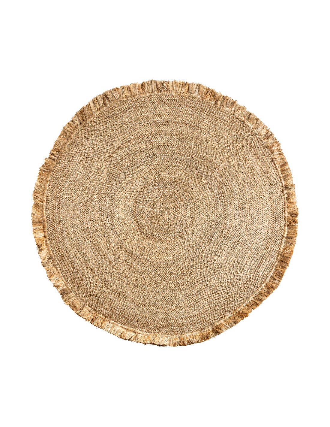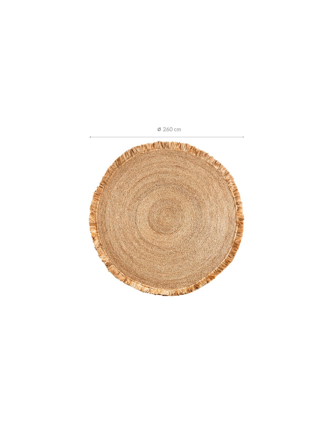 ALFOMBRA REDONDA KISAI, EN COLOR ARENA NATURAL, DE ESTILO COLONIAL. FABRICADO EN YUTE.
