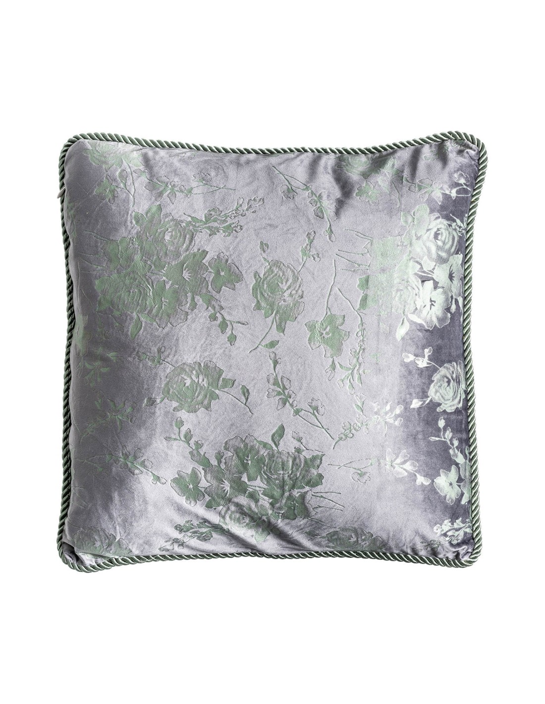 COJÍN HATRIA, EN COLOR GRIS/PLATA BORDADO, DE ESTILO PROVENZAL. FABRICADO EN POLIÉSTER.
