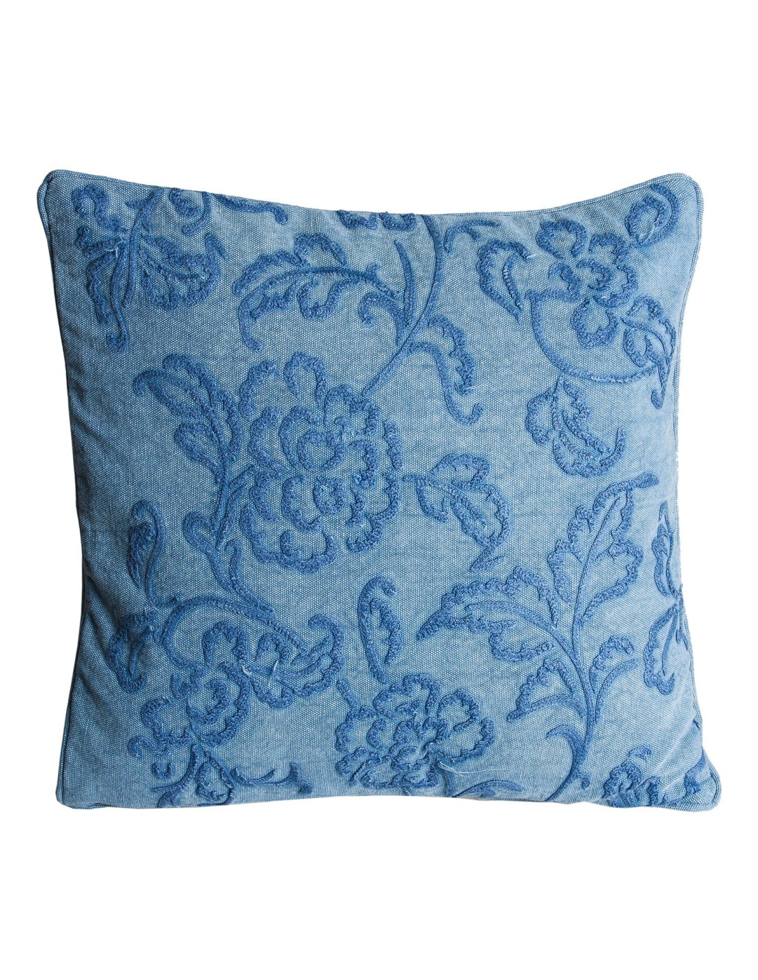 COJÍN CUADRADO BLESI, EN COLOR AZUL BORDADO, DE ESTILO PROVENZAL. FABRICADO EN ALGODÓN.