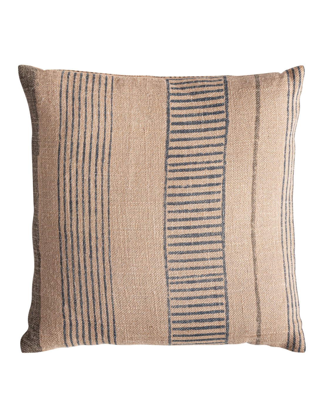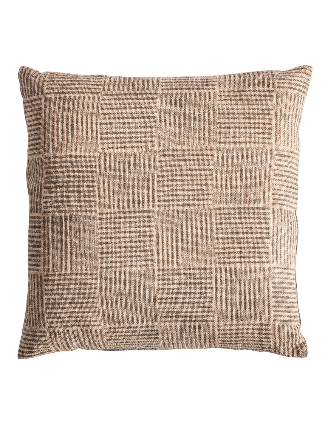 Cojín Khepri de estilo clásico fabricado en yute beige combinado con fibra natural en color negro. Producto desenfundable ideal para aportar elegancia y comodidad a tu decoración.