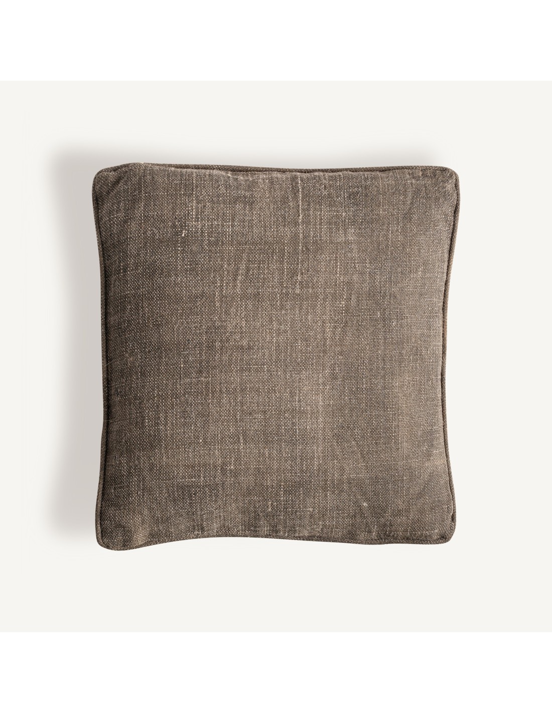 El cojín Nefer está confeccionado en yute de color beige, un material sostenible y resistente, combinado con fibra natural en color verde, que aporta un sutil toque de color sin romper la armonía visual.