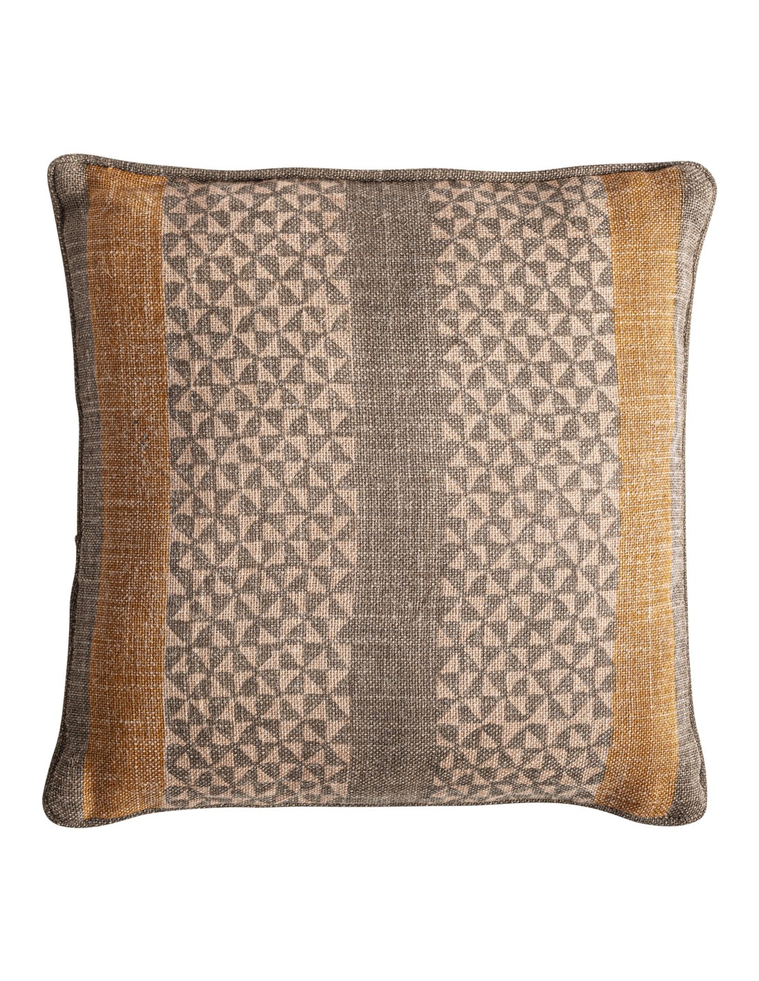 El Cojín Narmer de Vical Home destaca por su diseño clásico y natural, elaborado en yute beige y fibra natural en tonos ocre y verde. Una pieza decorativa ideal para dar calidez y estilo a cualquier estancia.